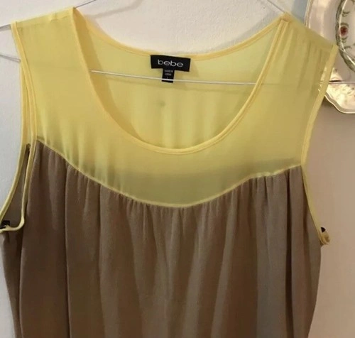 Bebe Tan & Lemon Yellow Dress Size L Retail $275