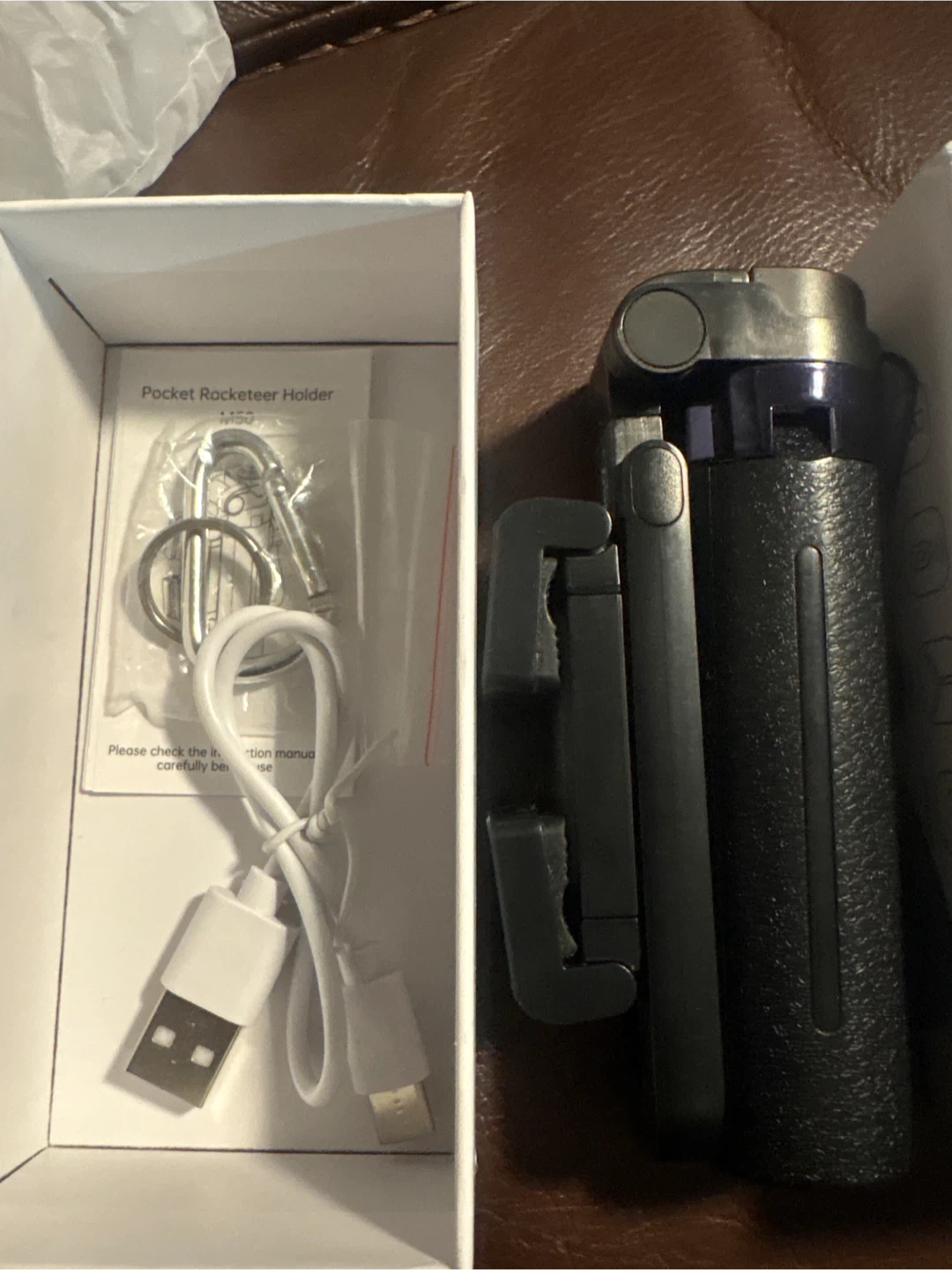 Selling a 3-in-1 pocket phone grip, model Compact M50! It comes with the original box and all included components, such as the Pocket Rocketeer Holder and a USB charger cable. Great for on-the-go content creation or hands-free video calls