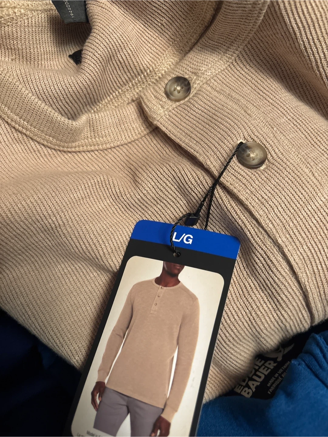 I have a collection of brand new men's tops for sale. All are size Large (L) and still have their original tags attached: