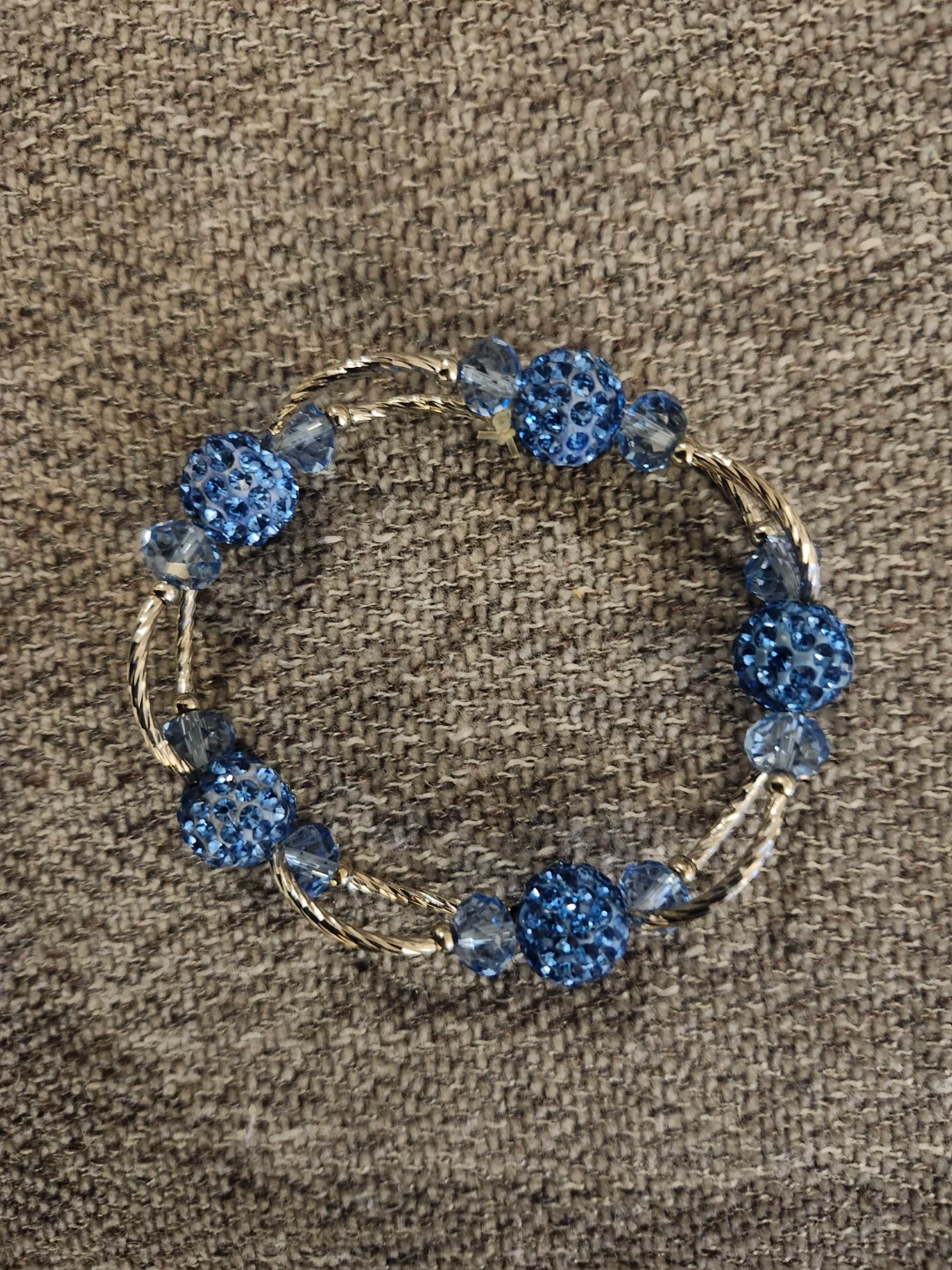 Pretty blue beaded bracelet. It features silver coloured wire and a collection of blue beads. It's in great condition and ready to wear!