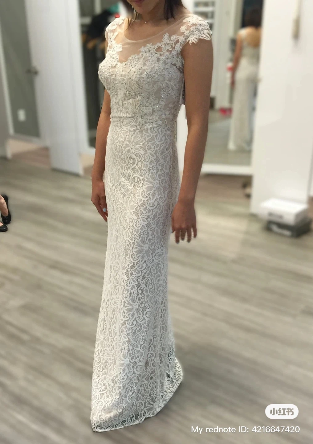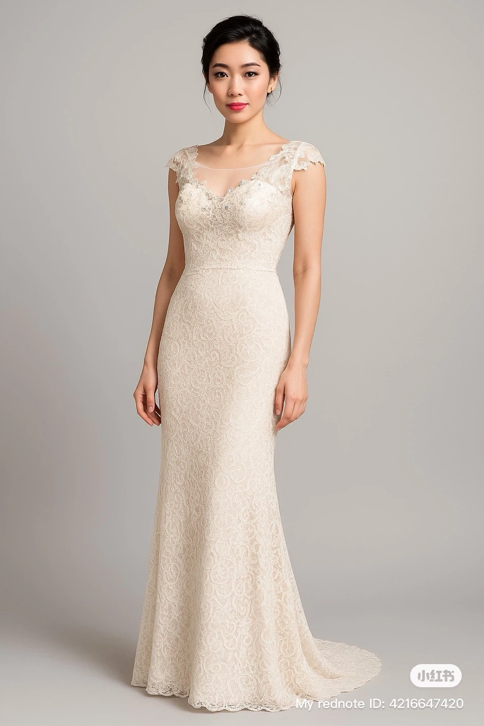 - Cap-sleeve lace shoulders