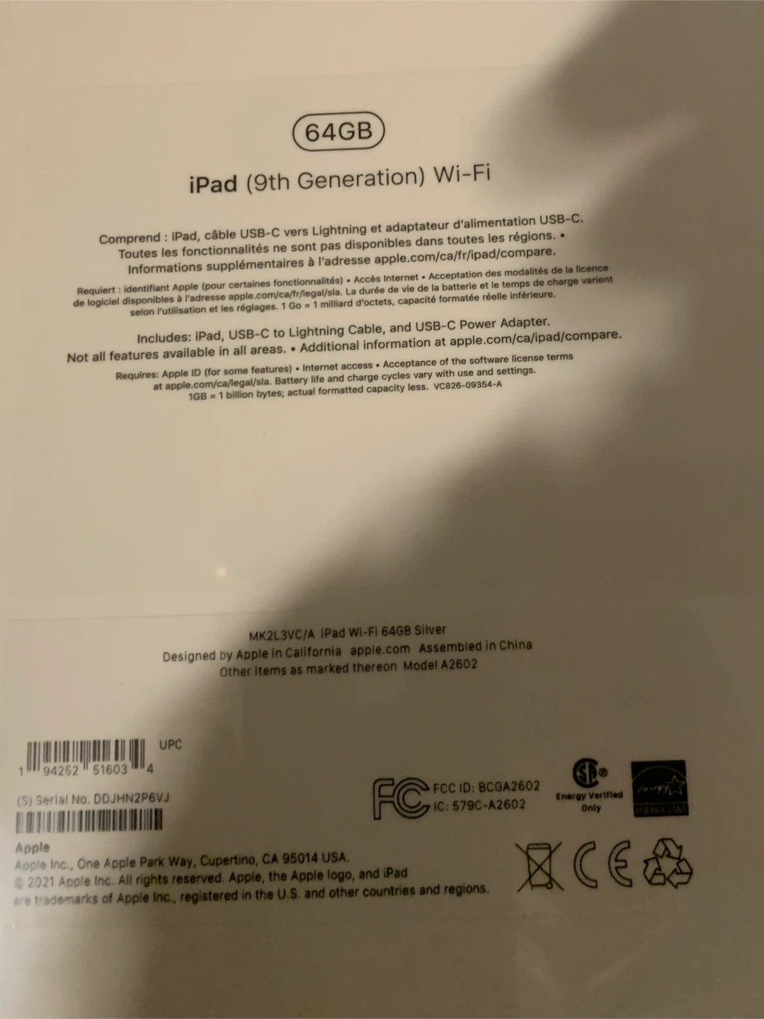 Selling an Apple iPad 9th Generation with 64GB of storage and Wi-Fi. It comes in Silver.