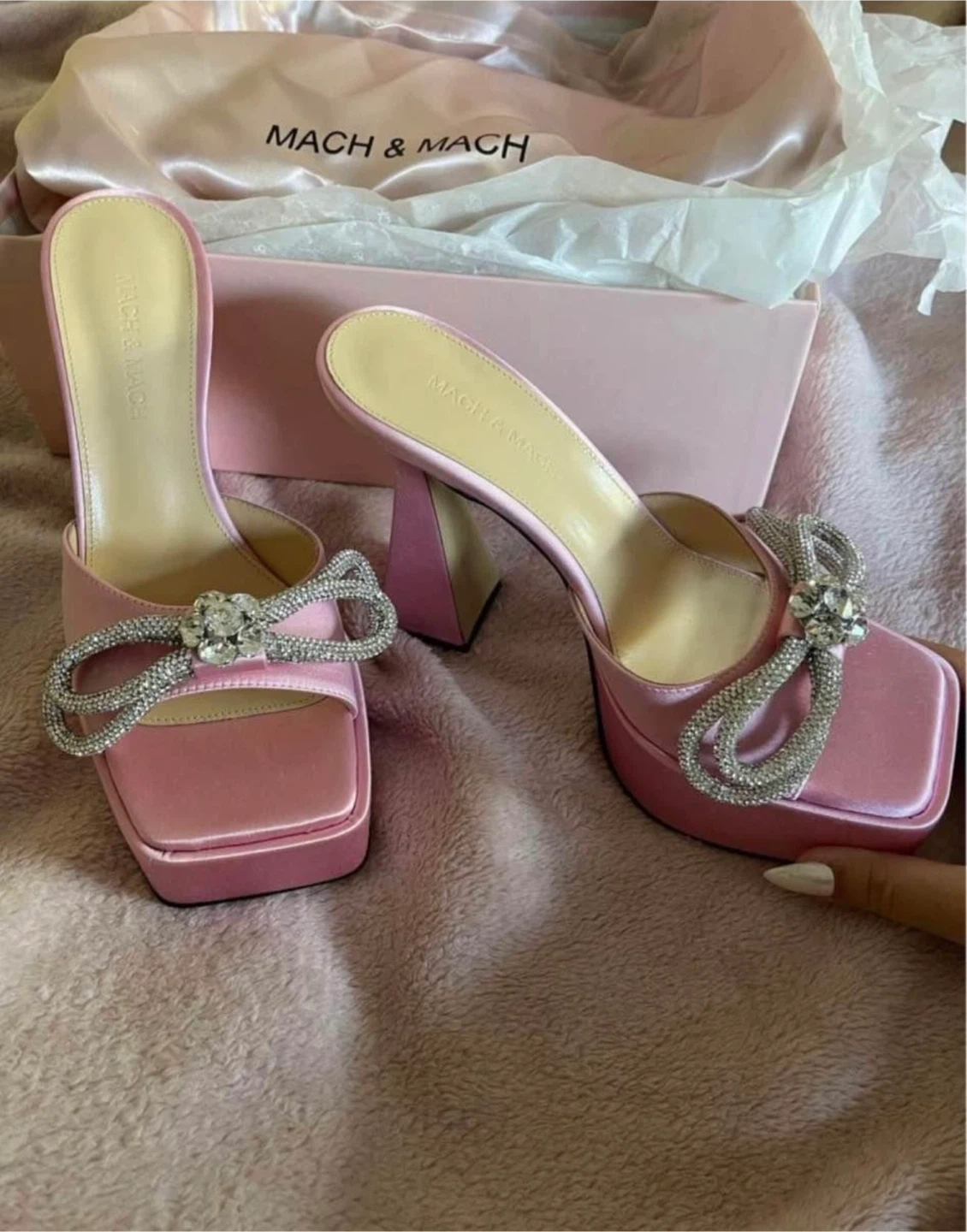 Mach & Mach Pink Crystal Bow Heels - Size 37.5