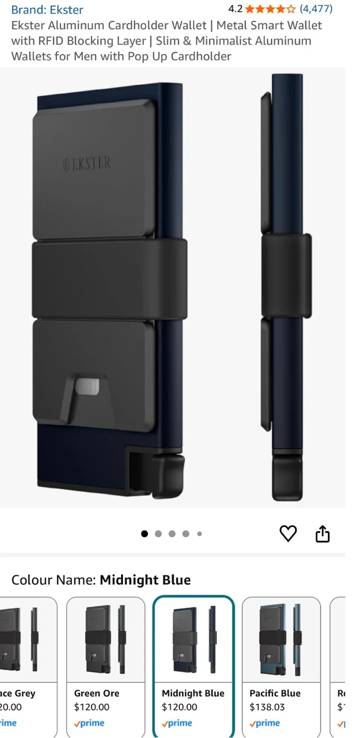 Selling an Ekster Aluminum Cardholder Wallet in Midnight Blue! It's a slim and minimalist wallet with an RFID blocking layer and a pop-up cardholder. Comes with the original box and user manual!