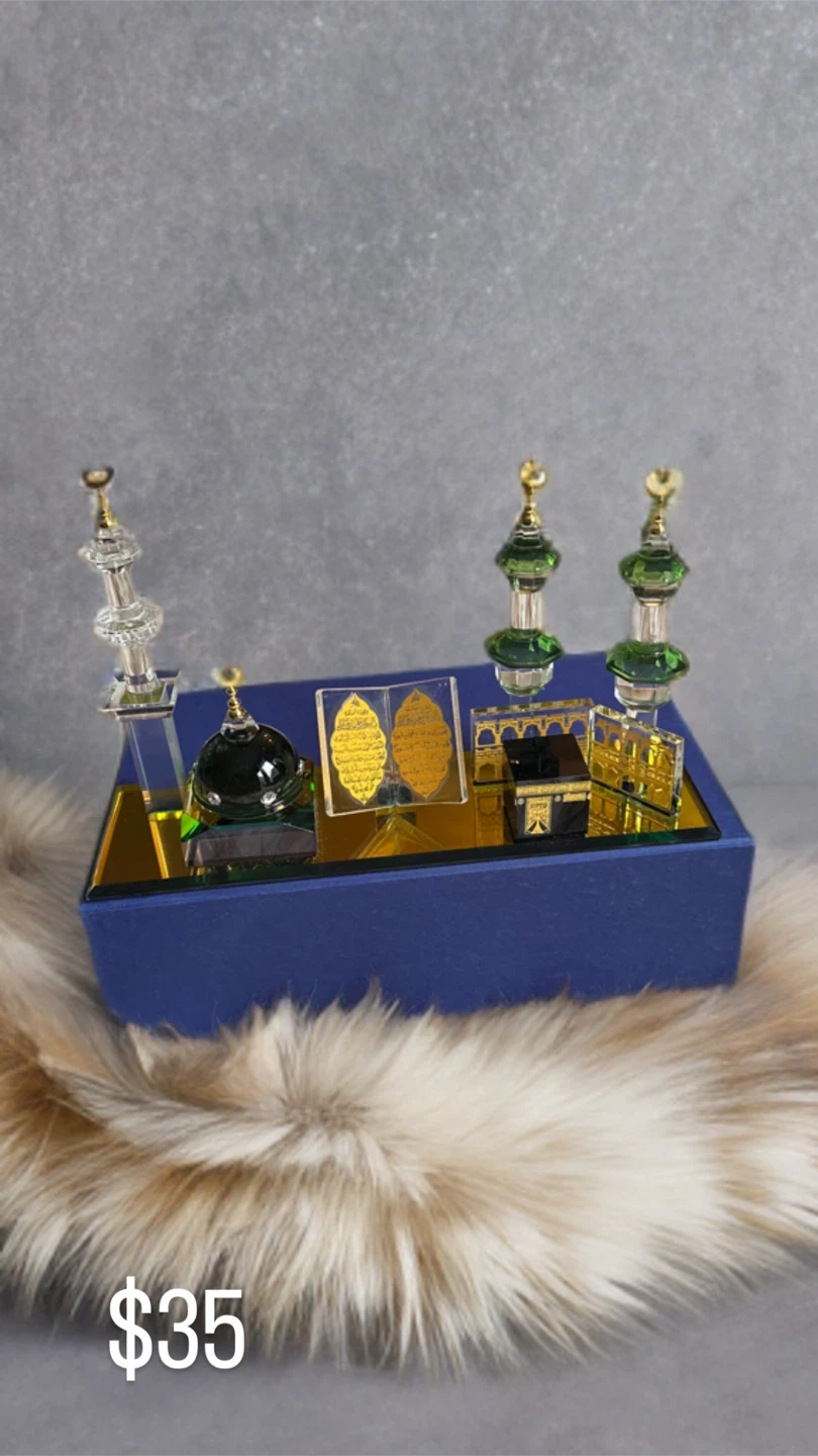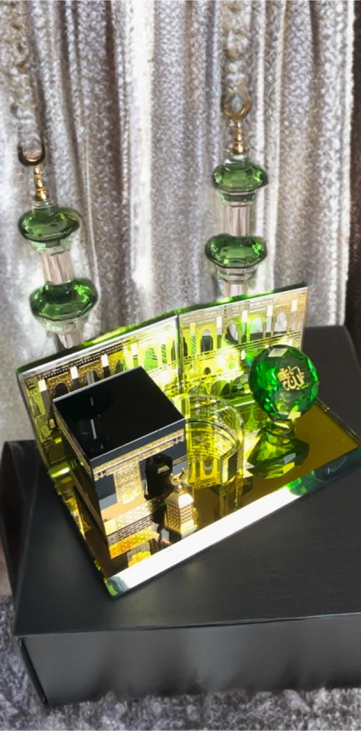 This is a beautiful Kaaba miniature display set. It features intricate details and a lovely design. Perfect for decoration or as a thoughtful gift!