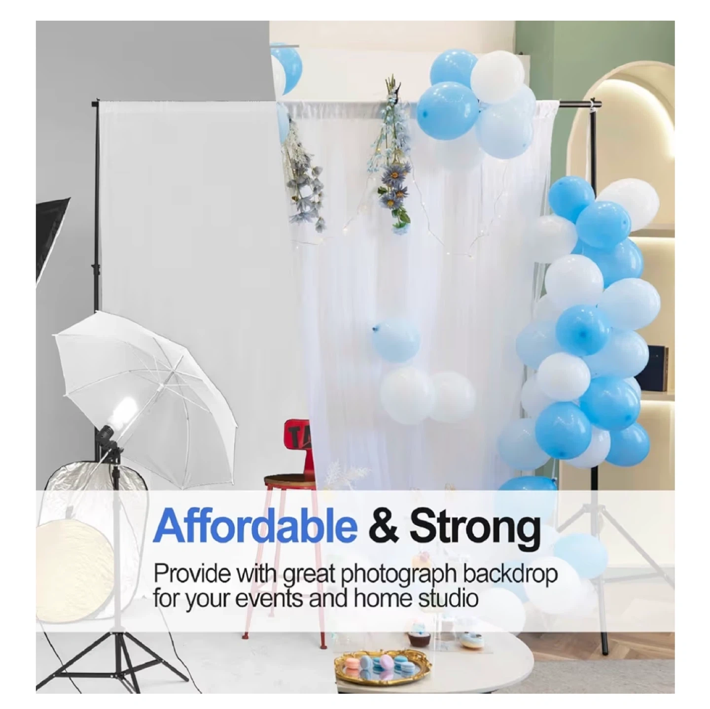 • Two sturdy tripod backdrop stands made of aluminium alloy (adjustable in height from 2.6 feet to 7.0 feet)