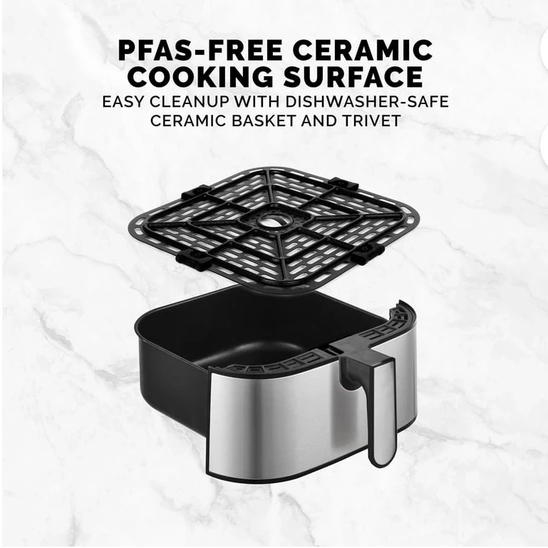 Selling a Brand New Kalorik digital air fryer! It features easy-to-use digital controls with 10 presets, taking the guesswork out of cooking. It's multifunctional, allowing you to air fry, bake, broil, dehydrate, reheat, and warm meals. Plus, it has a PFAS-free ceramic cooking surface that's easy to clean and dishwasher-safe for the ceramic basket and trivet