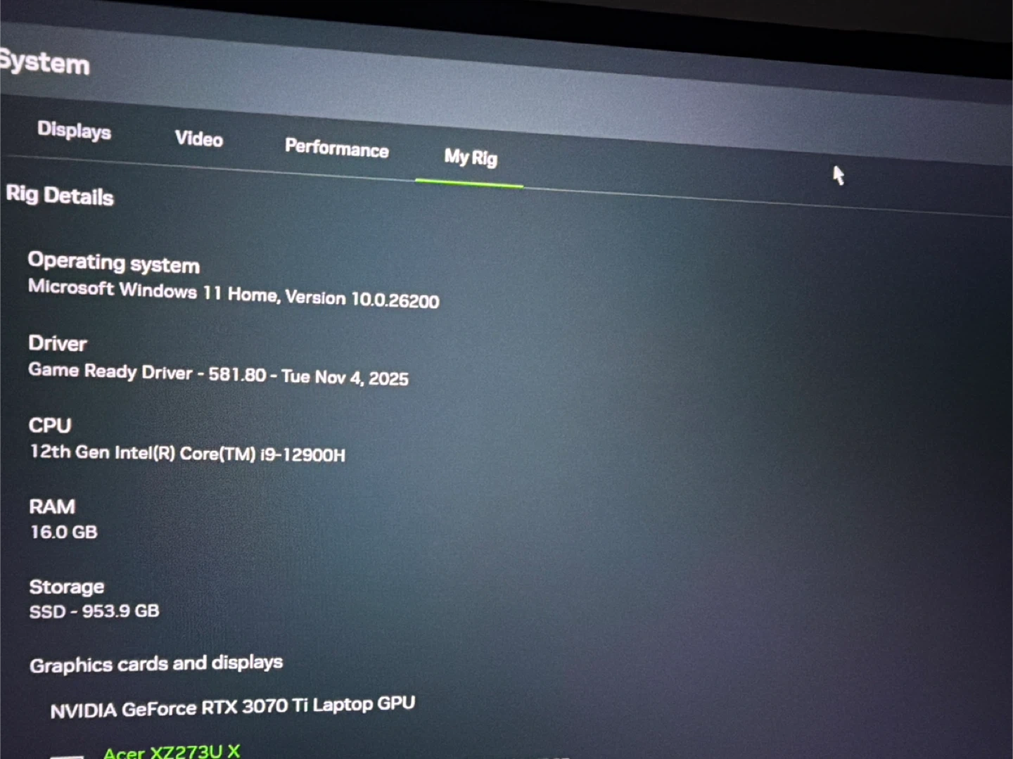 - Driver: Game Ready Driver - 581.80 - Tue Nov 4, 2025