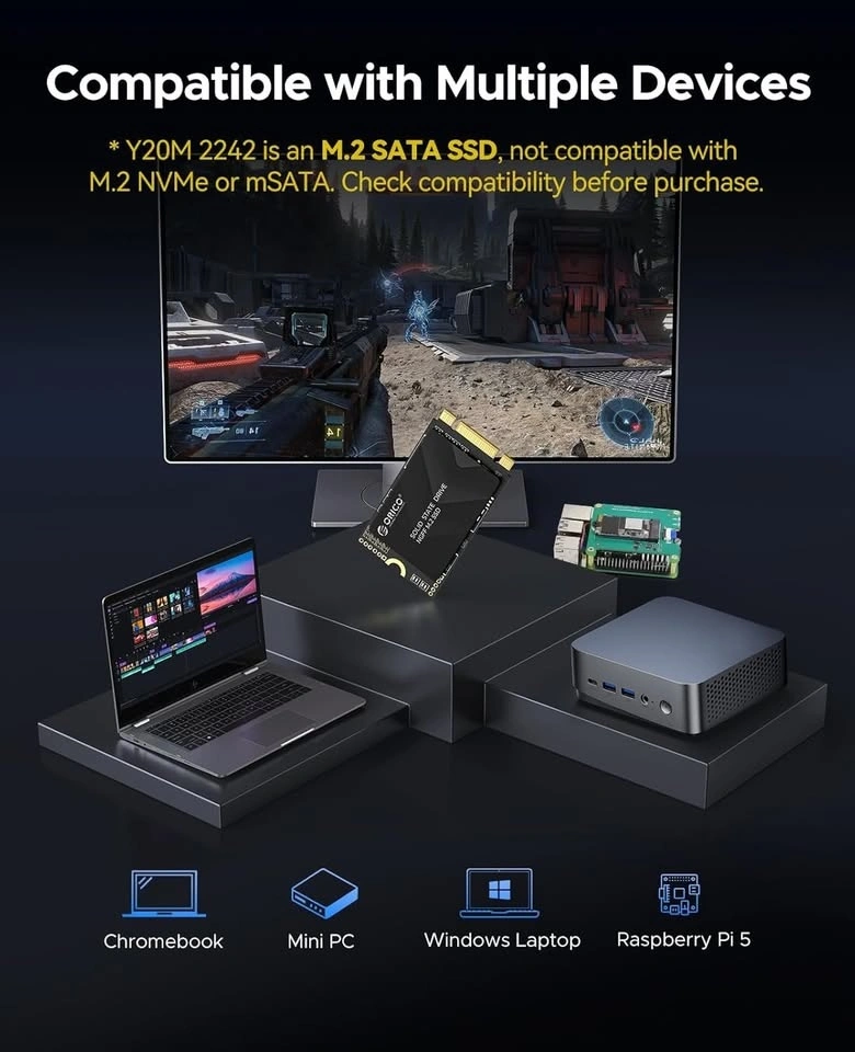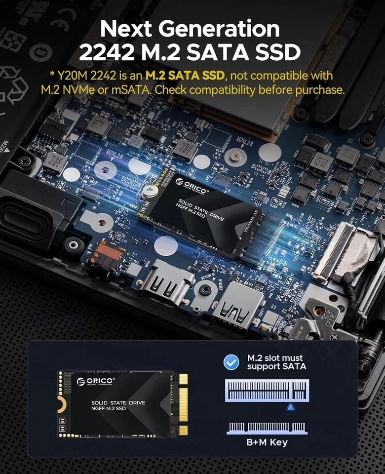 SATA ONLY — Not compatible with PCIe NVMe devices. Open box, never used (box damaged). Fast Speeds: Up to 510MB/s read / 470MB/s write. Ideal For: Ultra-thin laptops, mini PCs, and devices requiring M.2 2242 SATA (NGFF). TLC NAND: Stable, durable, and low power consumption. Size: M.2 2242 SATA (not NVMe). Check my profile for more quality items!