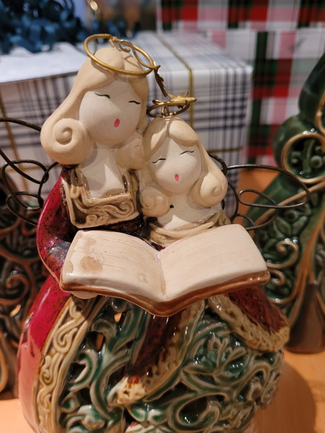 Selling a set of festive figurines! Includes a Christmas tree with a star on top and an angel figurine with two singing angels. They're in great condition and ready to add some holiday cheer to your home!