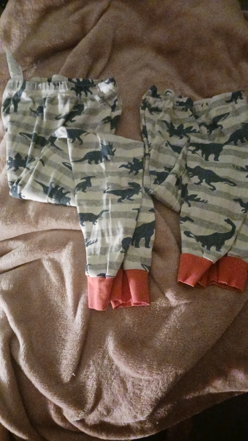 Giving away some gently used Hatley kids pajama bottoms. They features a cute dinosaur print on a striped background. Made from 100% organic cotton, ensuring a soft and comfy sleep for your little one!