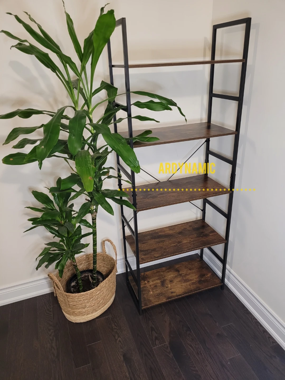 Selling an Ardynamic 5-tier bookshelf! It's a stylish and functional piece that would look great in any room. The bookshelf features a black metal frame with wooden shelves, providing a modern industrial look. Perfect for displaying books, plants, or other decorative items