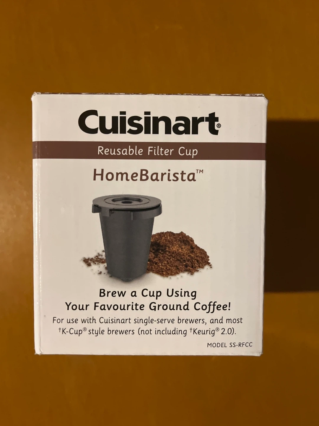 I'm selling a Cuisinart Reusable Filter Cup - Home Barista. It's designed for use with Cuisinart single-serve brewers and most K-Cup style brewers (not including Keurig 2.0). Maximum fill is 15 grams (2 1/2 tablespoons). Brew a cup using your favourite ground coffee! never used! (bought the wrong one π)