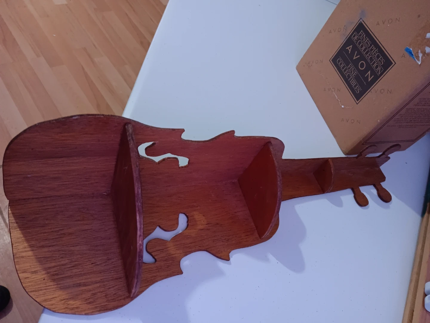 Selling an Avon Fines Pieces de Collection violin-shaped shelf. It's a unique piece for displaying small collectibles or adding a touch of musical charm to your space.