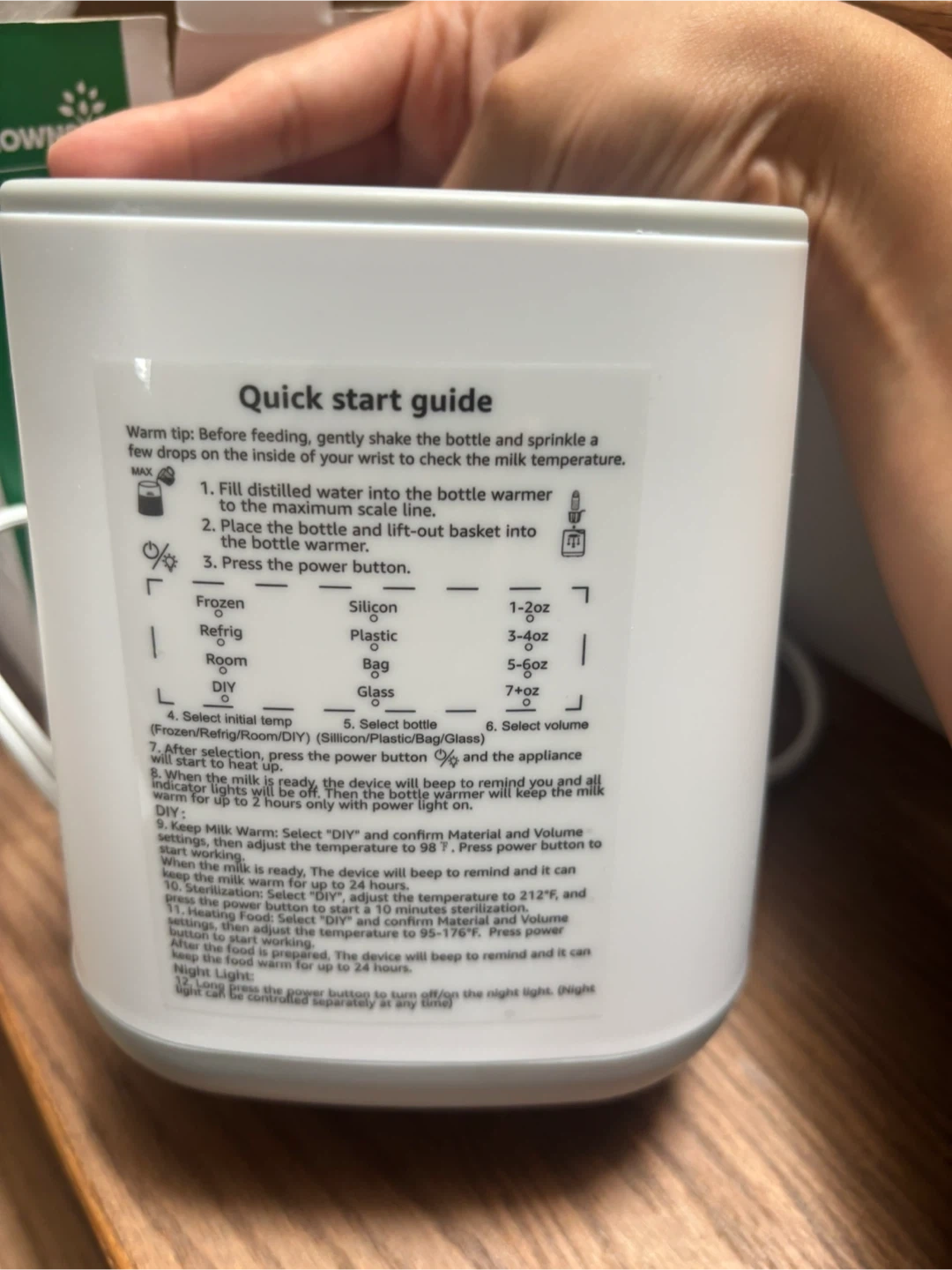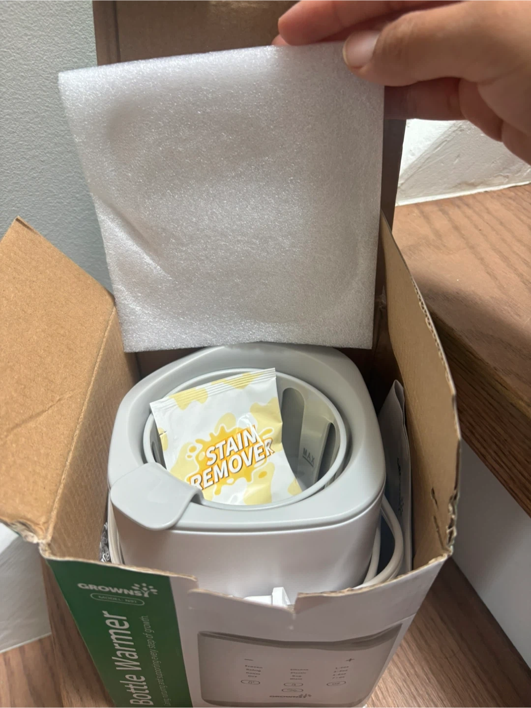 Selling a Grownsy N9T bottle warmer! It's Brand new. and comes with the box. This warmer is designed to gently and evenly heat bottles, making it perfect for feeding time. It can handle frozen, refrigerated, and room temperature milk, and it works with silicone, plastic, bag, and glass bottles. It also includes a stain remover!