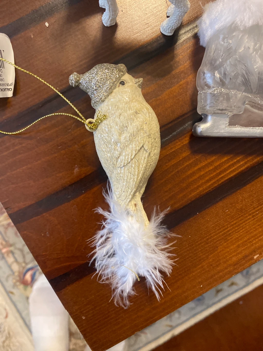 Selling a set of Christmas tree ornaments! There is a beaded reindeer, a bird with a hat and feather tail, and an ice skate with faux fur trim. All in great condition and ready to decorate your tree. Please note that its $5 each