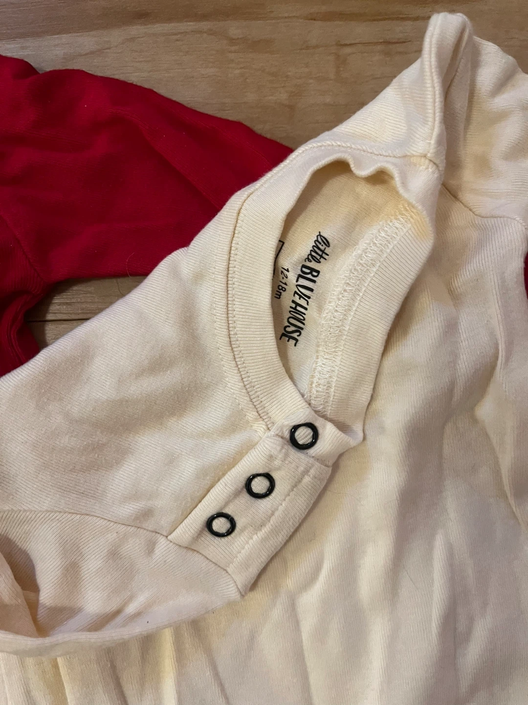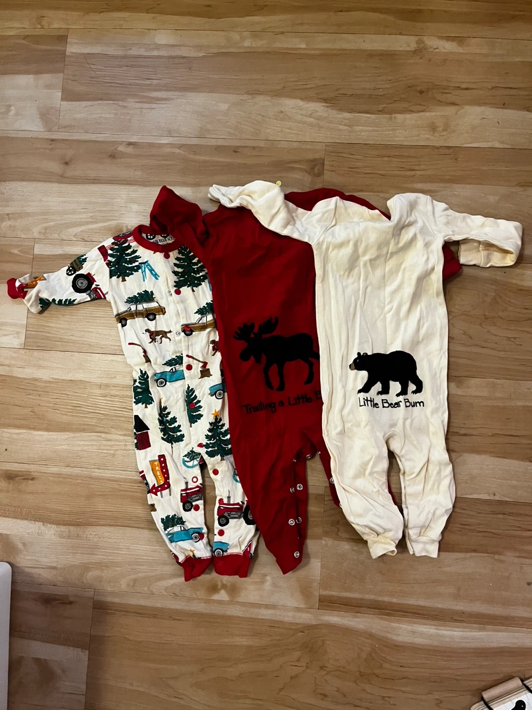 Selling a set of three Little Blue House baby sleepers in holiday themes, size 12-18 months. They're in great condition and feature cute designs. Worn only once. Thoroughly washed and ready for their new home!