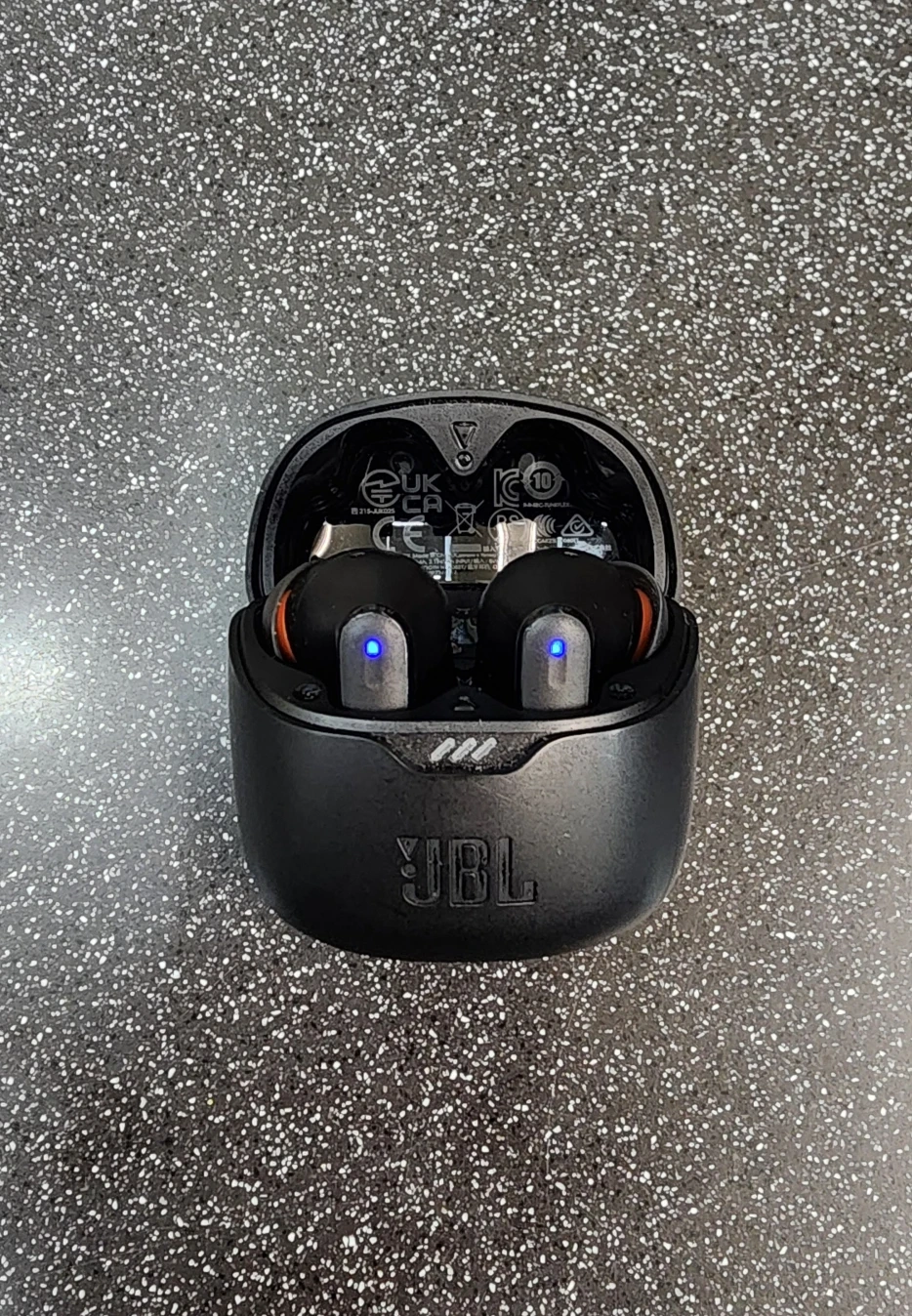 Excellent condition - a pair of JBL Tune wireless earbuds in black! They're in great condition and come with the charging case. Enjoy JBL's signature sound with noise cancellation in a compact and stylish design