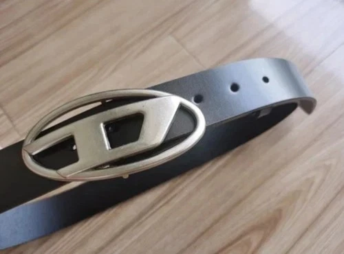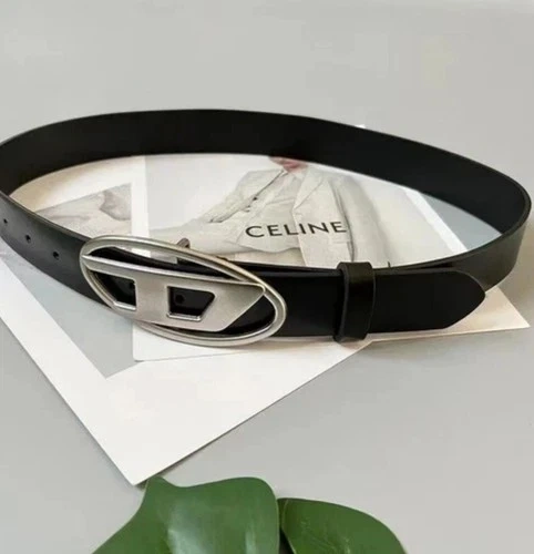 Unisex Black Leather Belt with Diesel D Metal Buckle