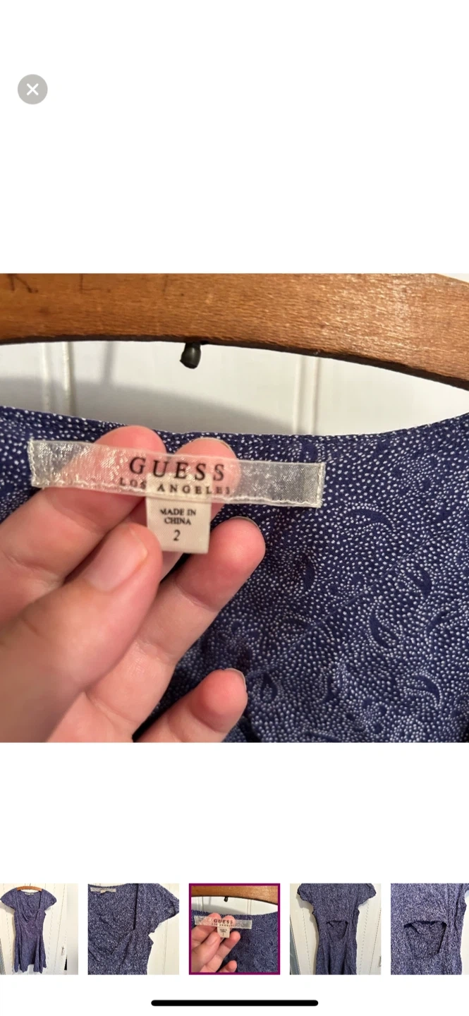 Guess brand. Short ruffle sleeve open back mini dress. Navy & white polka dot print. Size women’s 2. Brand new condition