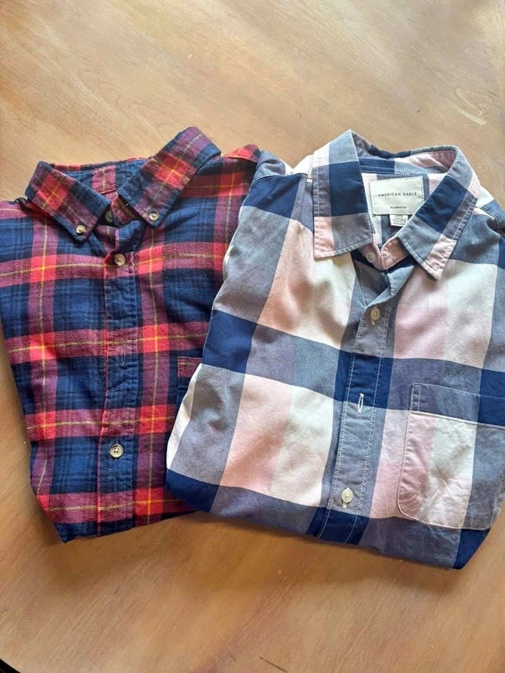 One size is Small, one size medium. Both Men’s. The medium fits as a small. No rips or stains.