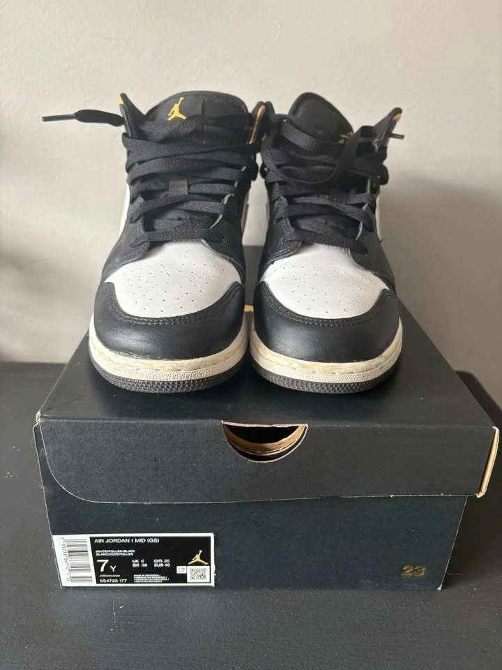 Authentic Air Jordan 1 Mid (GS) - Black, White & Gold