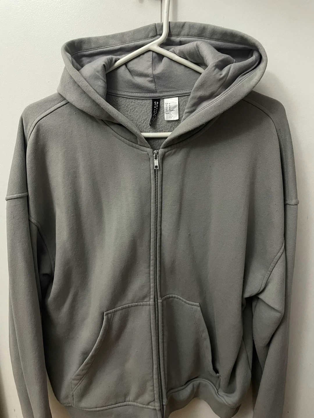 Cozy H&M grey zip-up hoodie, perfect for layering! It's in great condition and ready for a new home. The hoodie features a comfortable fit and a classic design that goes with everything