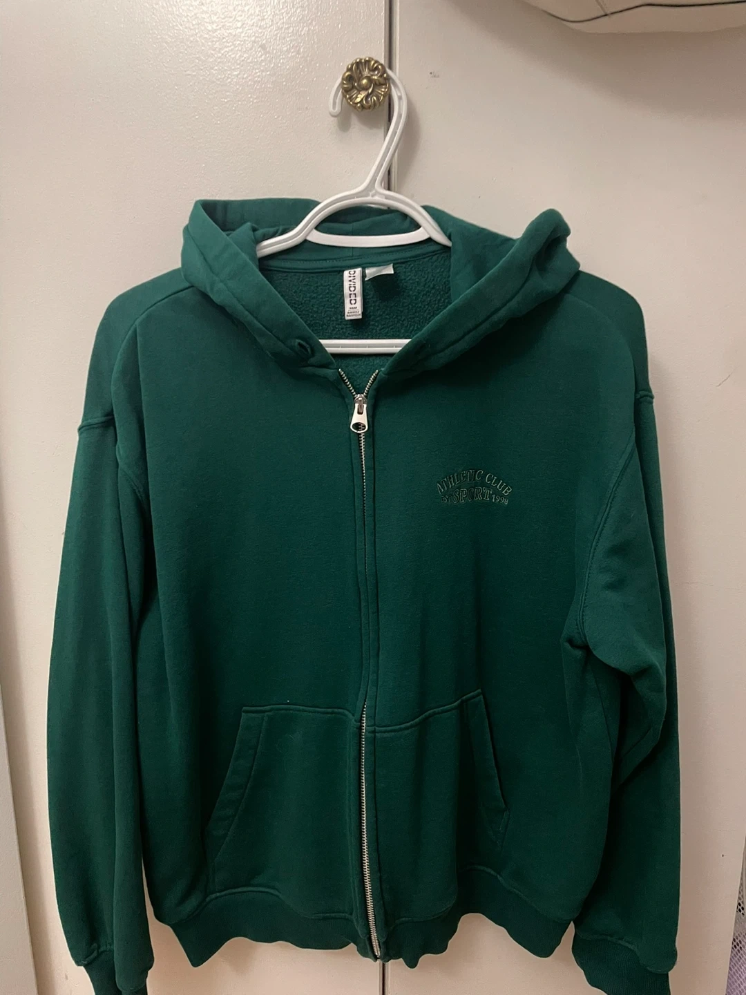 Selling a green zip-up hoodie from H&M! It's from their Athletic Club line and is in great condition. Perfect for layering or wearing on its own.