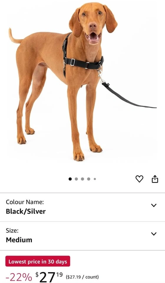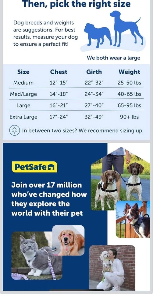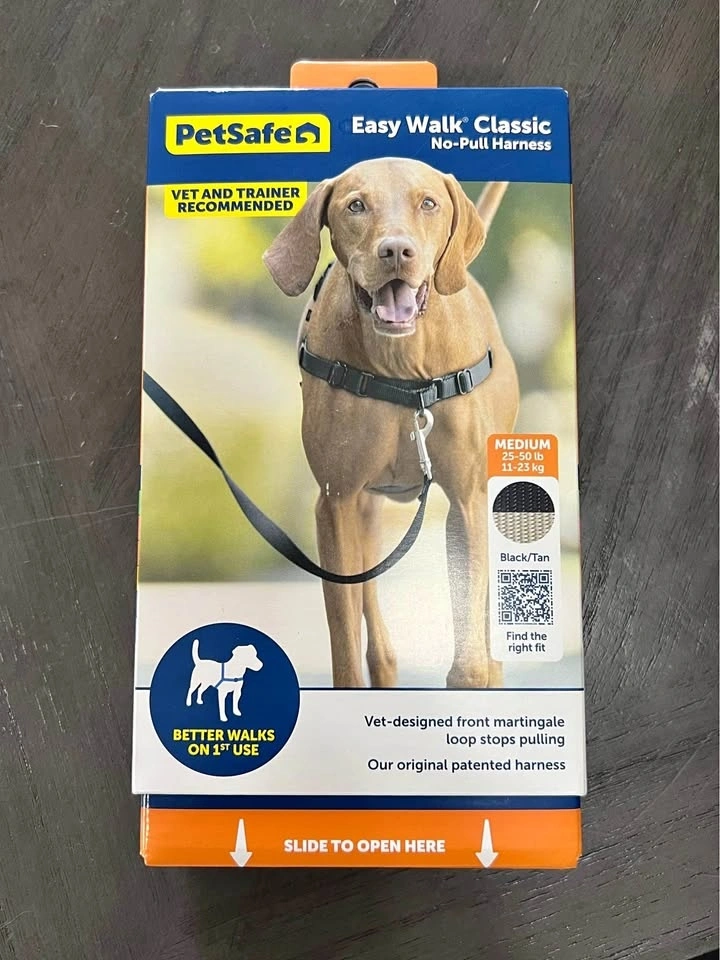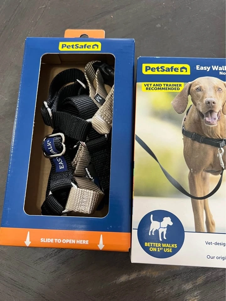 PetSafe Easy Walk Dog Harness, Medium, Black/Silver. See photo for size in inches. Bought on Amazon for $30 with tax but it didn’t fit my dog well (it was slightly loose). It’s basically new as I only opened to try it on my dog once. Pick up Downtown Toronto, message for details