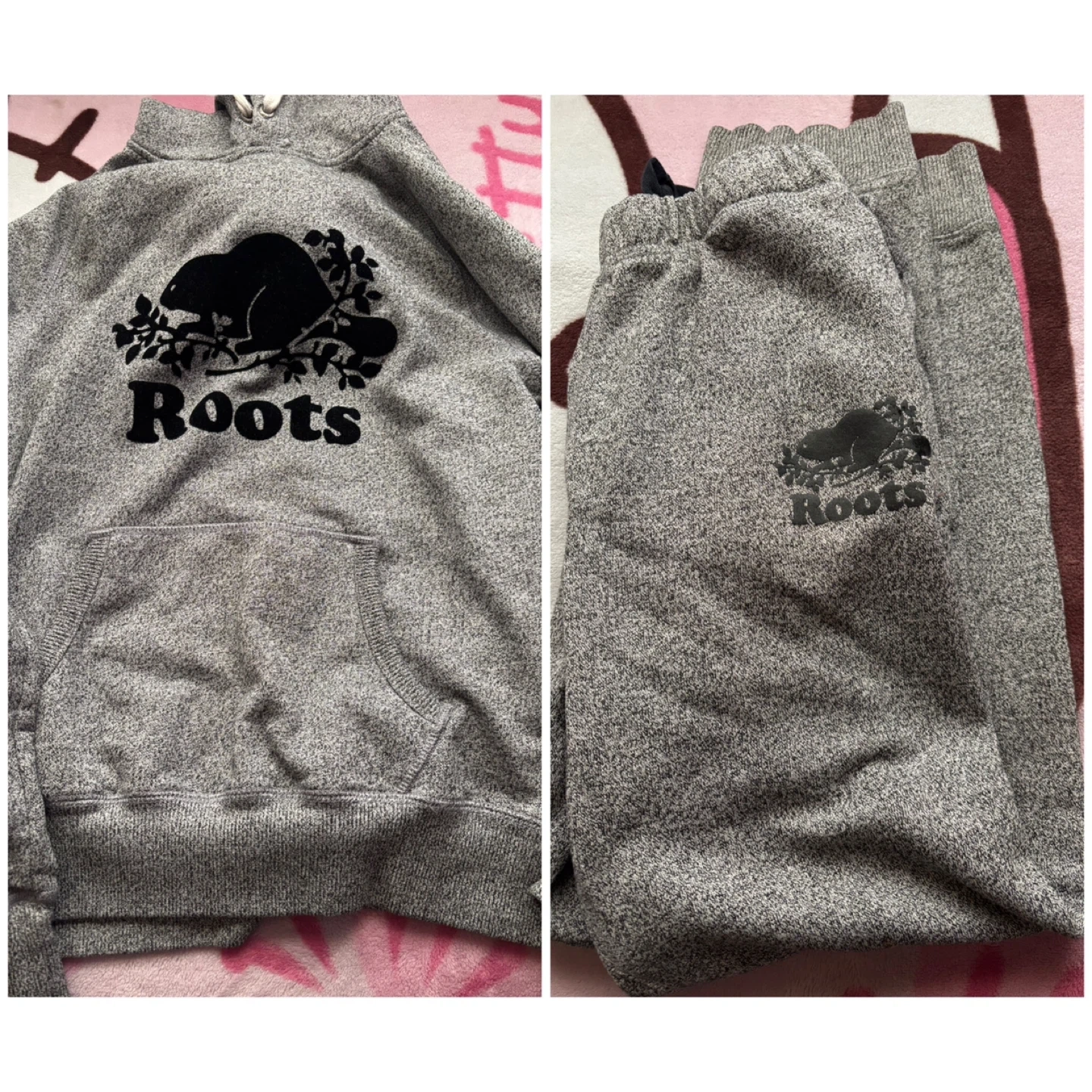 For sale is a Roots hoodie and sweatpants set in the size medium for men. The set is in good condition and features the classic Roots beaver logo. Perfect for staying cozy!