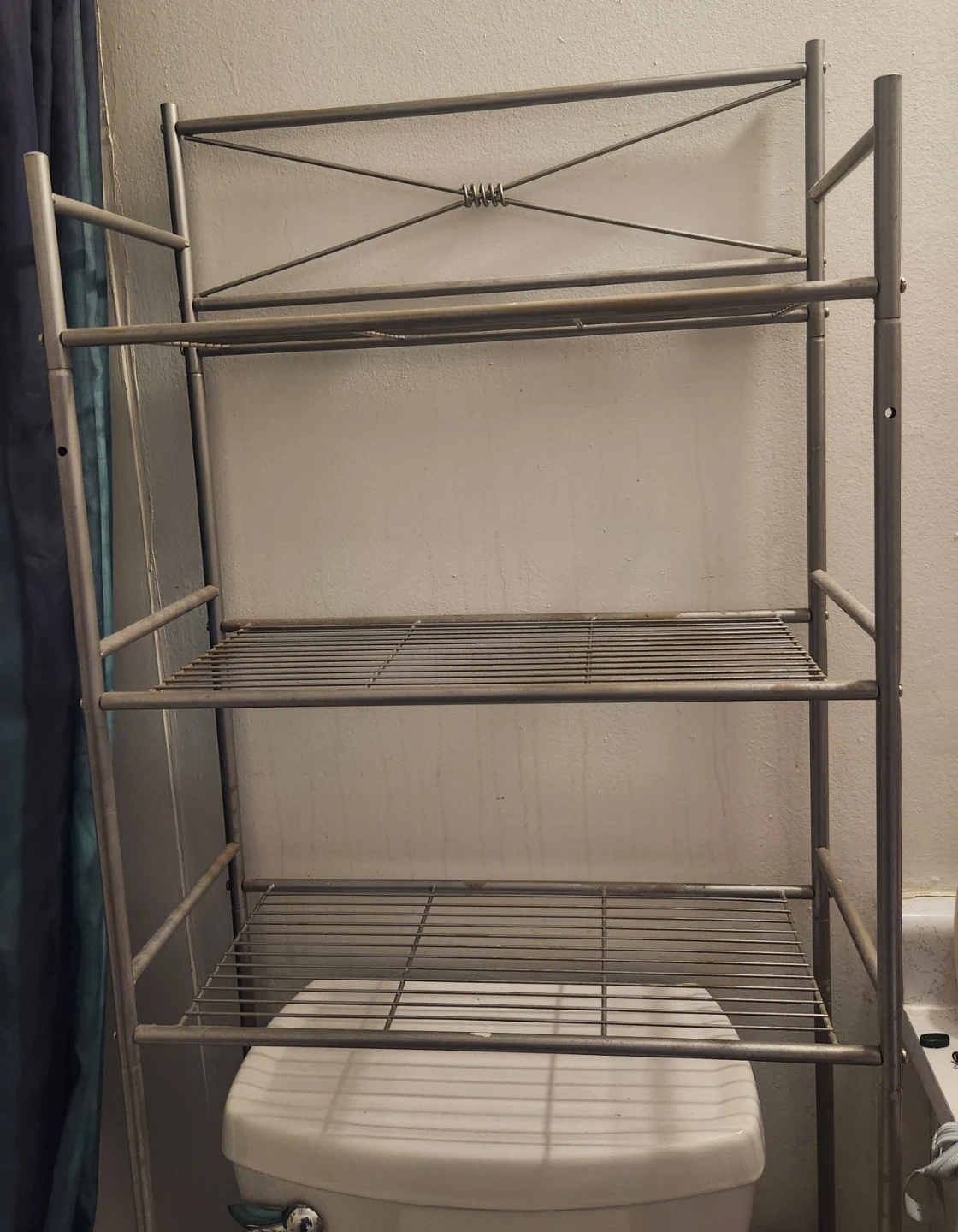 Selling a handy over-the-toilet bathroom shelf! It's perfect for adding some extra storage space in your bathroom. Great for organizing toiletries, towels, or other bathroom essentials. It's in good condition and ready to use