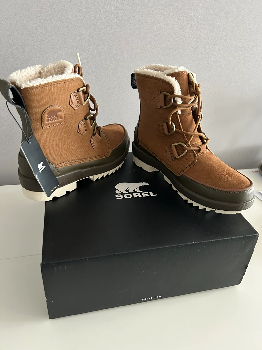 Selling a pair of new and unworn Sorel women’s boots. These are perfect for keeping your feet warm and dry during the colder months. They come with the original box!