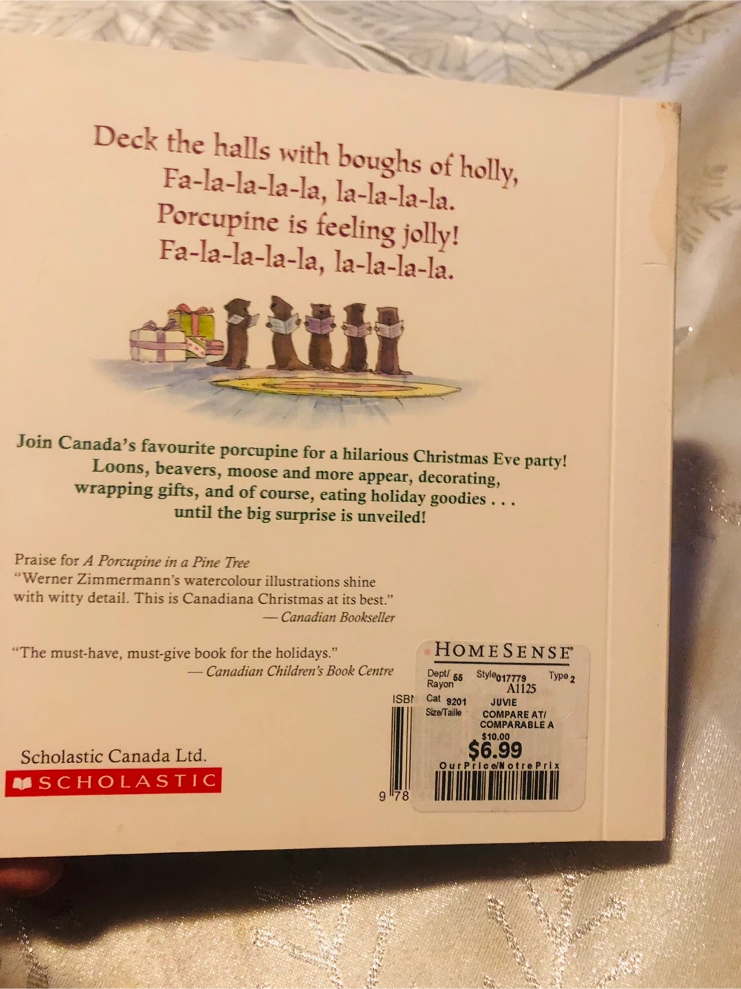 "Deck the Halls: A Canadian Christmas Carol" by Helaine Becker and Werner Zimmermann. It's a cute book with witty watercolour illustrations. Originally priced at $6.99.