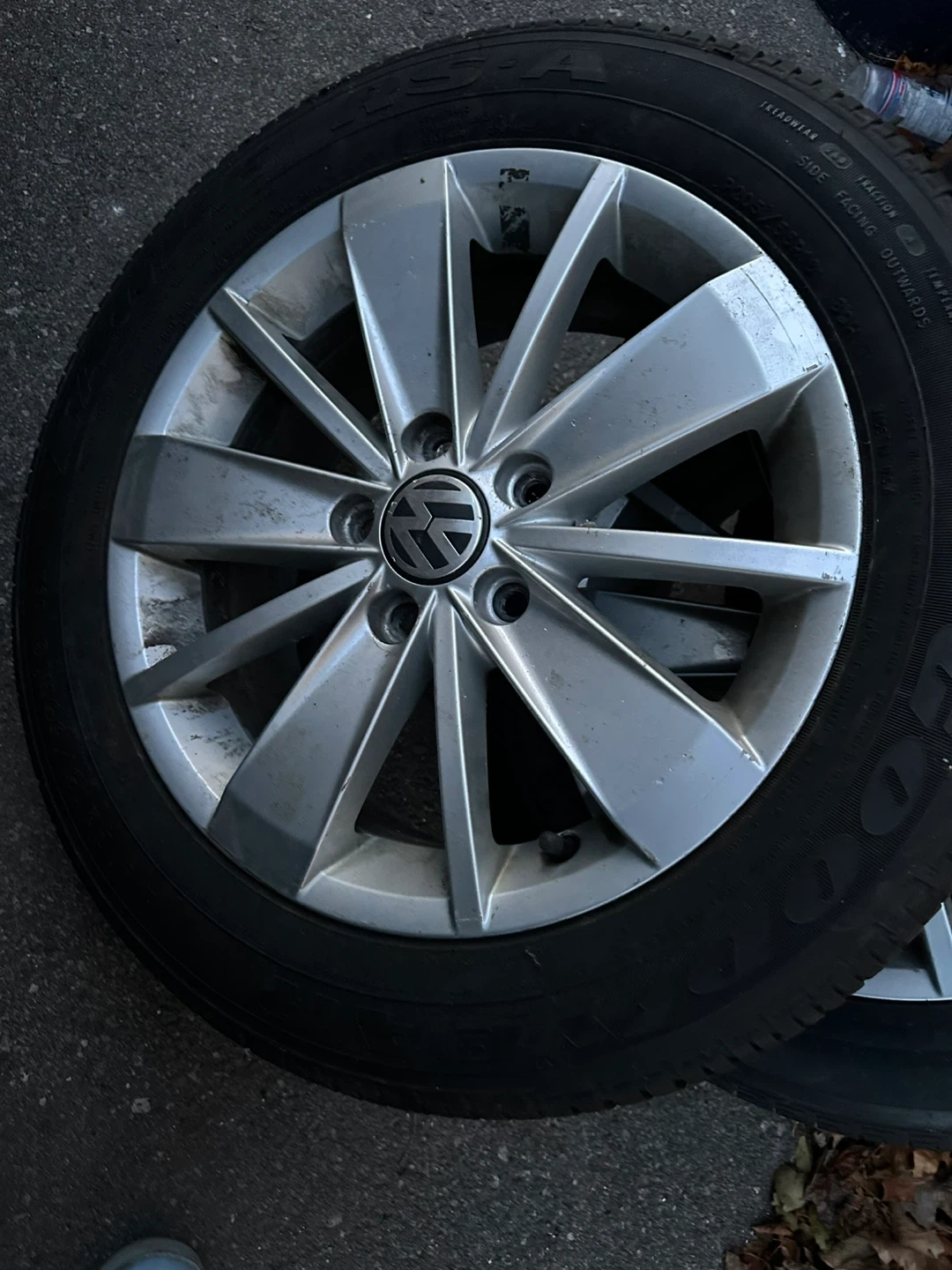 Selling a set of four Volkswagen rims with Bridgestone tires. They're in good condition and ready for a new vehicle!