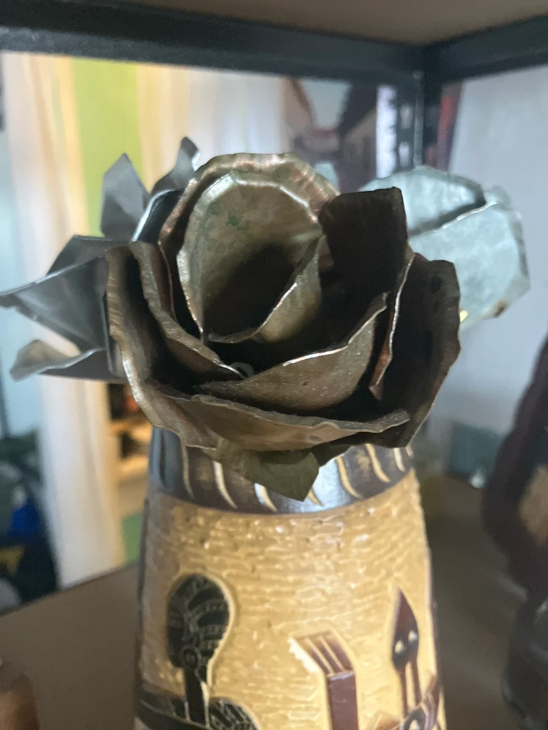 Buy & SellMetal Rose Sculpture in VaseMetal Rose Sculpture in Vase$30This is a unique metal rose sculpture displayed in a decorative vase. It would make a lovely addition to any home! Hand made to order.WHERE TO MEETCheck LocationView MapSELLERAlexBolton161 review0 chats·0 favorites·1 views