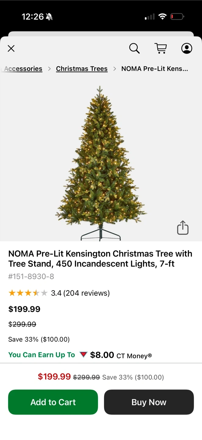 Selling a NOMA Pre-Lit Kensington Christmas Tree with Tree Stand, featuring 450 Kensington Lights and standing at 7 feet tall. Also included are some blue Christmas ornaments to decorate the tree! Originally bought for $199.99 but retails for $299.99.