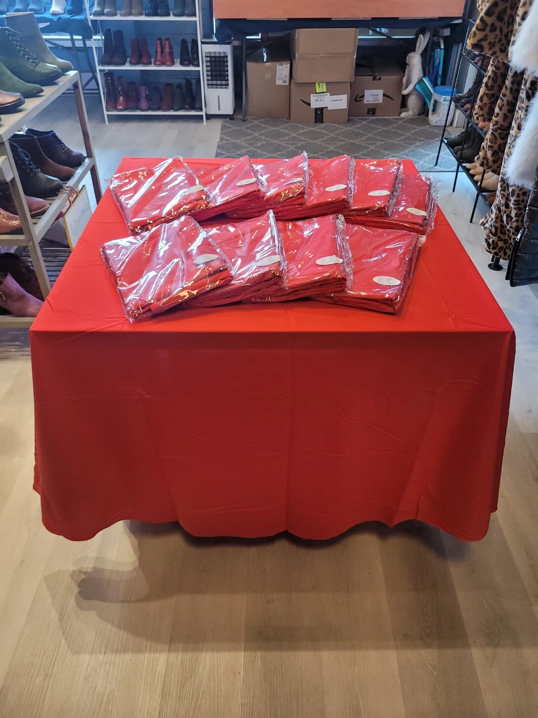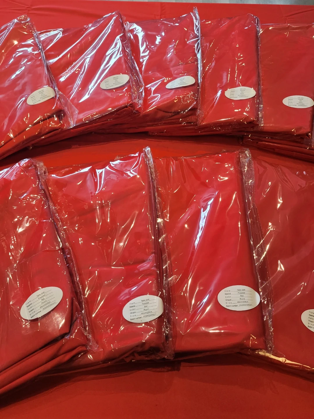 Selling new red, round 90" tableclothes!