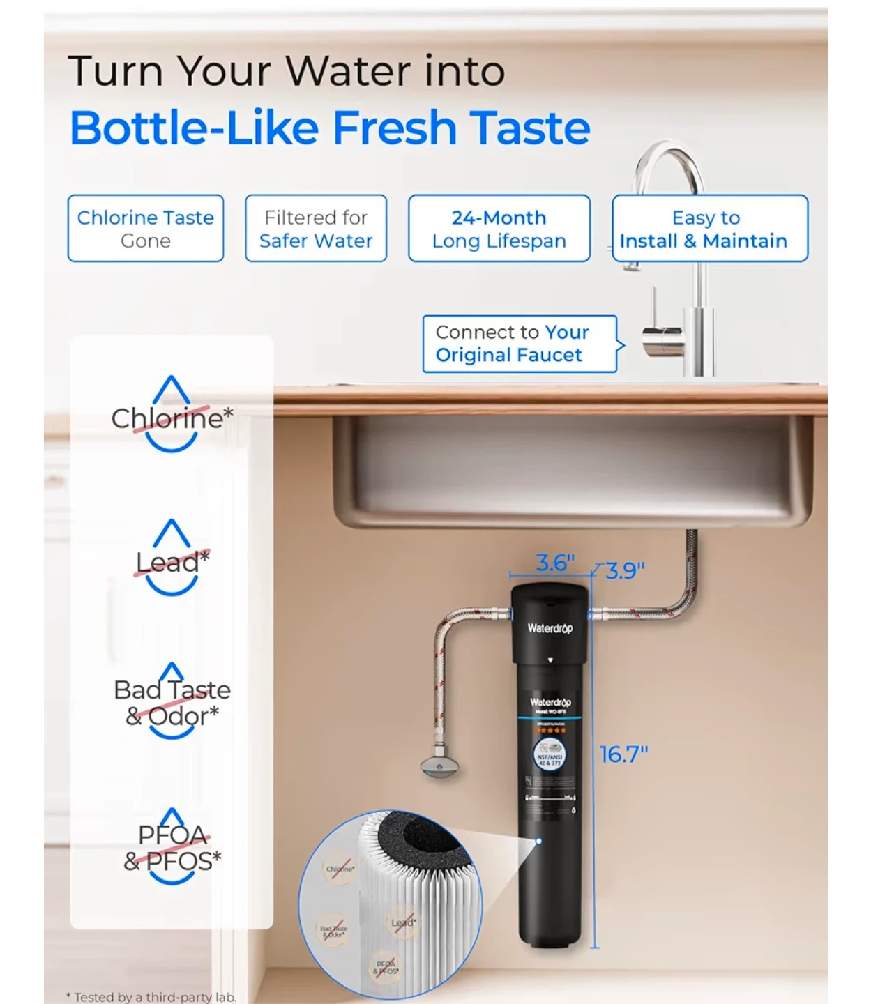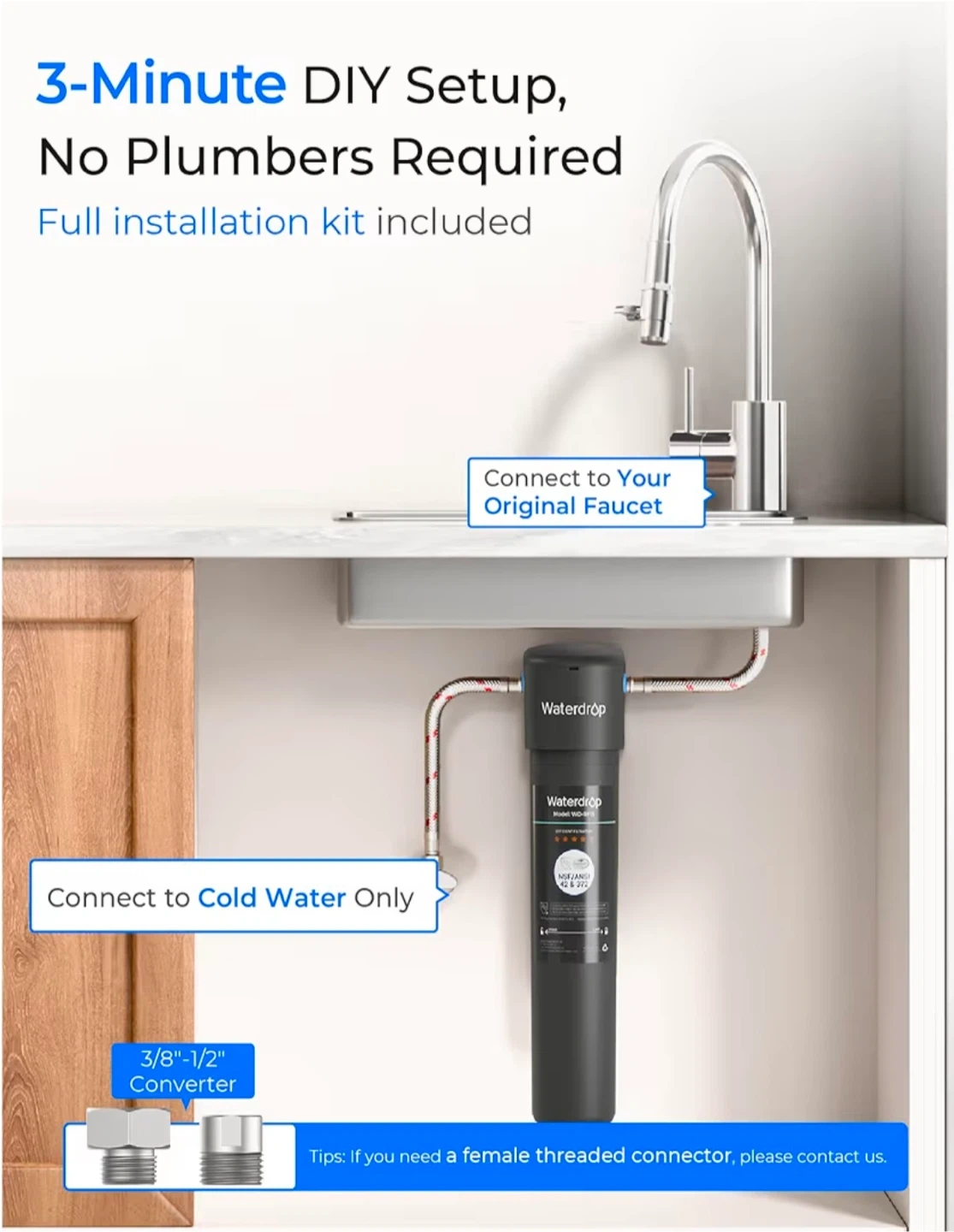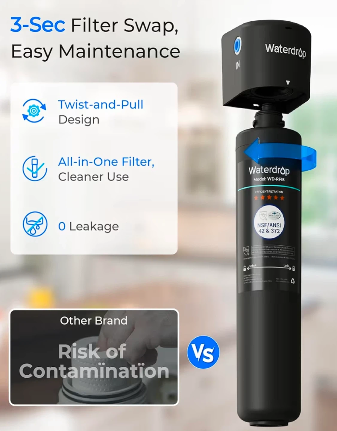Selling a brand new Waterdrop WD-RF15 under sink water filter! It's certified safer for better-tasting water, proven to reduce chlorine, and ensures lead-free safety. Enjoy fresher, purer water with its 20x larger filtration surface and dirt adsorption. Easy to install and maintain, and turns your water into bottle-like fresh taste!