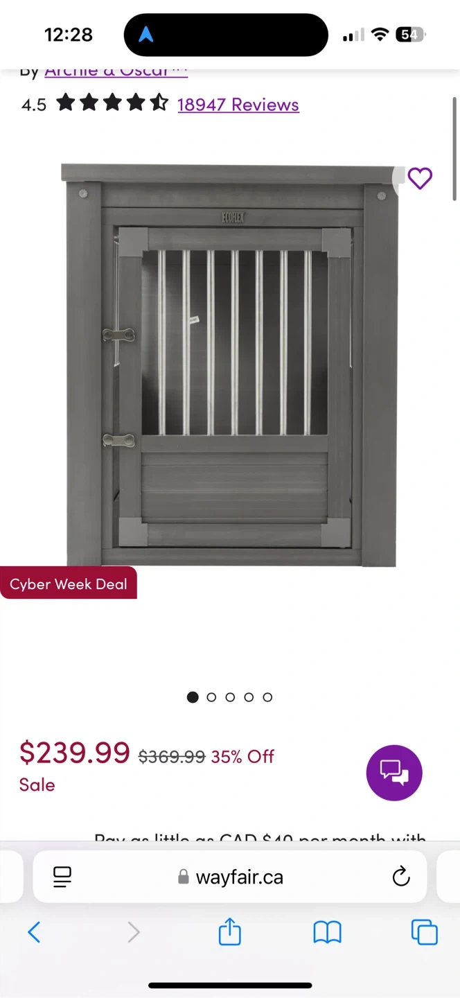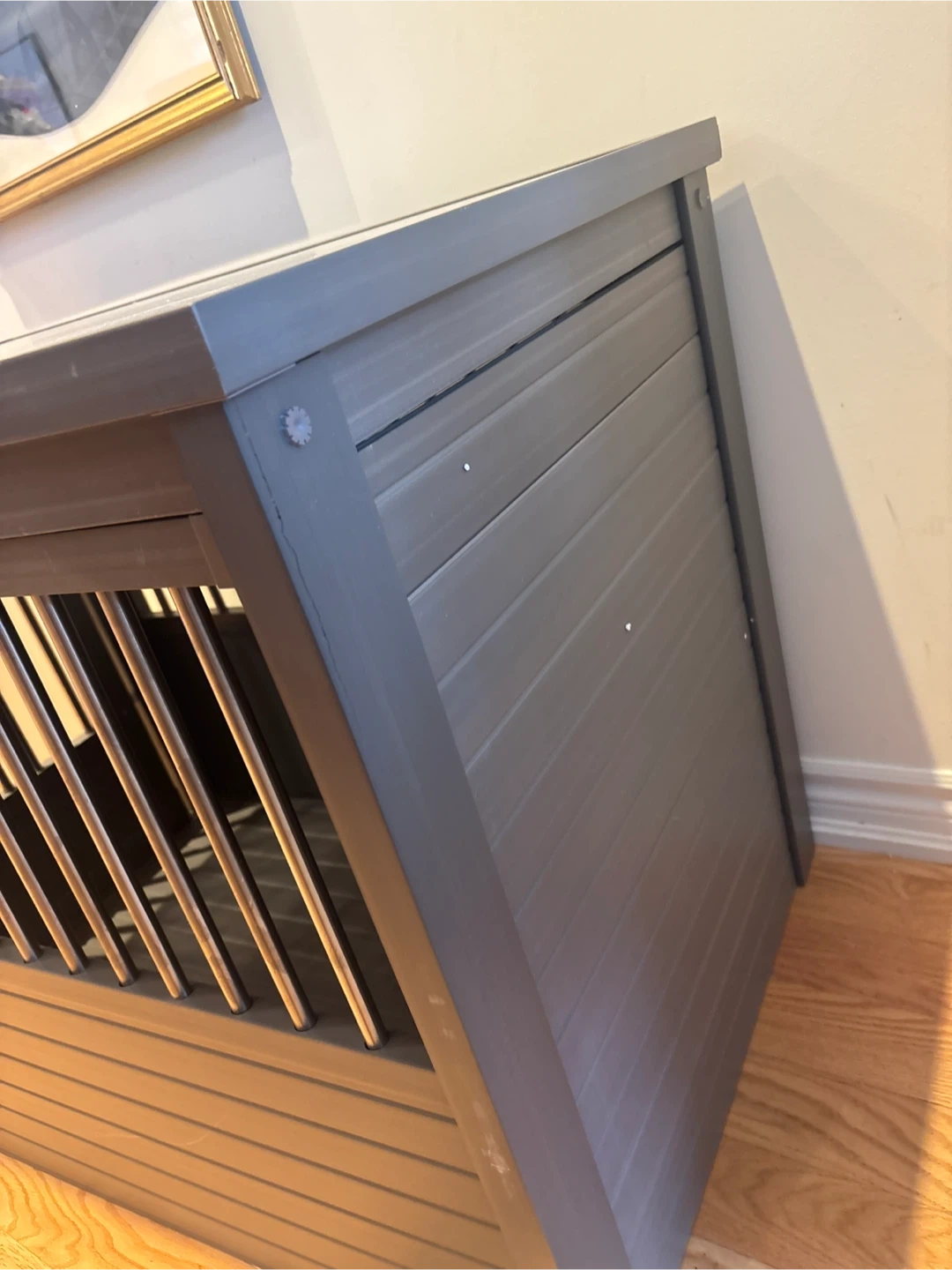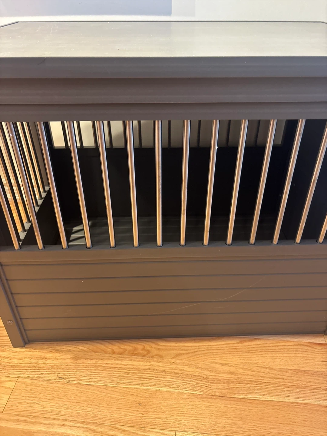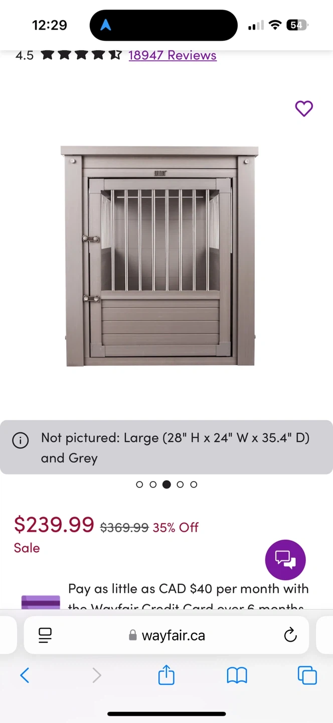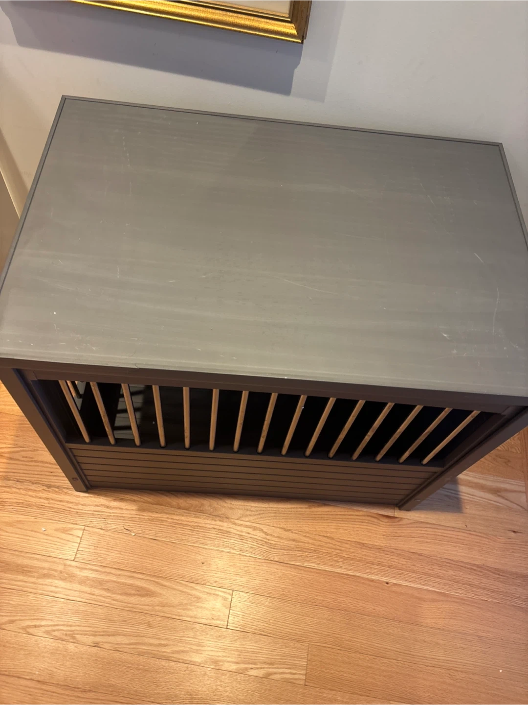 Selling an ECOFLEX dog crate that also functions as an end table! It's large size (28" H x 24" W x 35.4" D) and grey colour make it a stylish and functional addition to any room.
