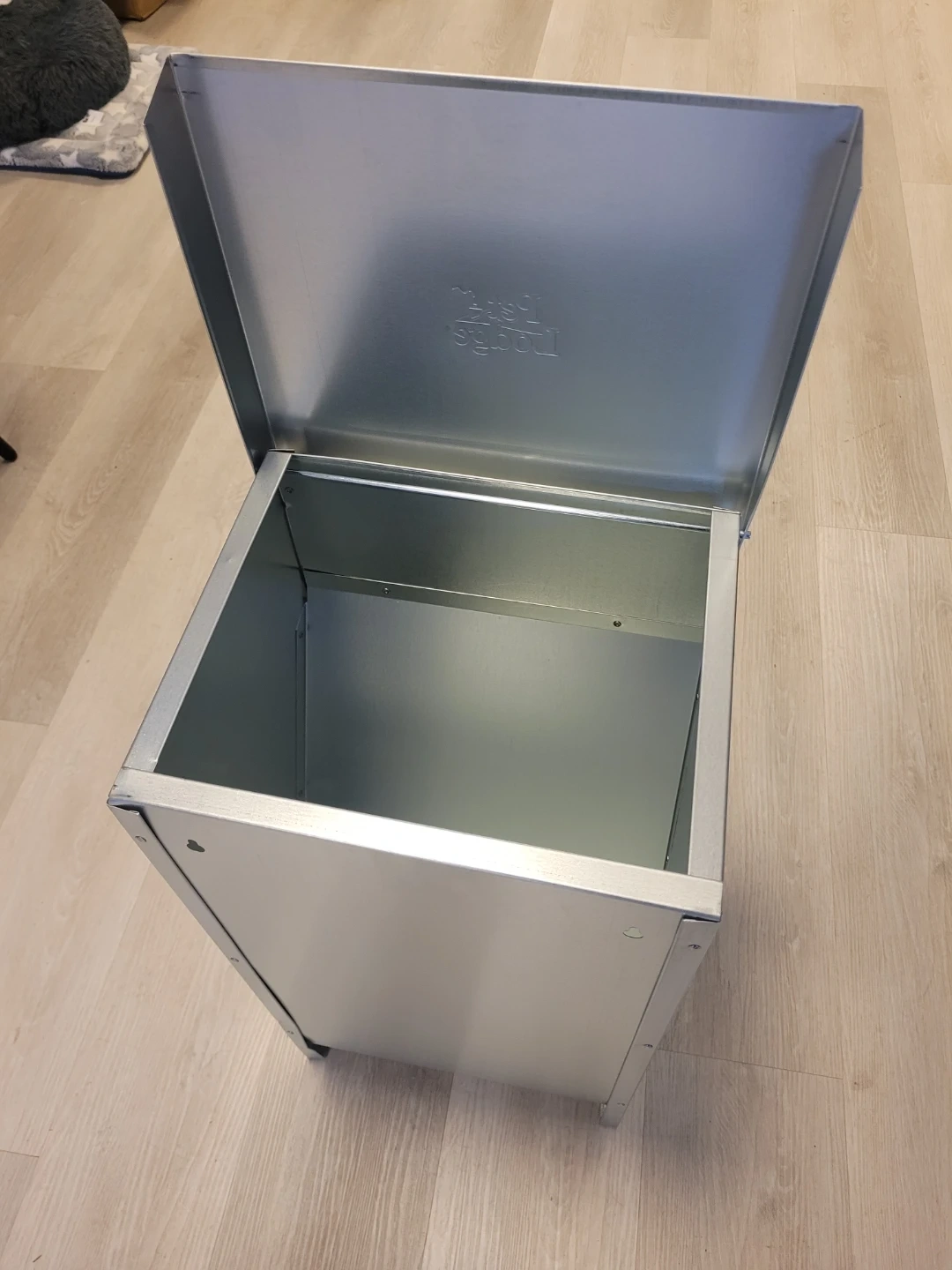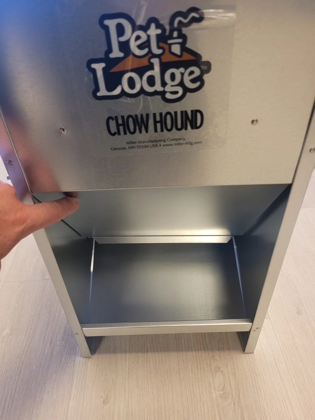 The Chow Hound Automatic Dog Feeder is manufactured from tough galvanized steel for durability and rust resistance. The magnetized door stays shut until your dog nudges it open, keeping unwanted pests out. A specially angled chute provides a steady food flow on demand. Food stays fresh, dry, and pest free. Can be mounted on a wall or frame (not included). Comes fully assembled.