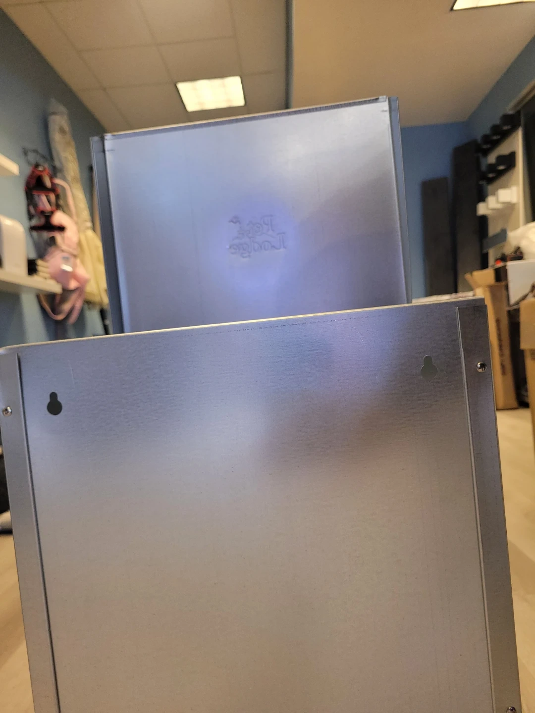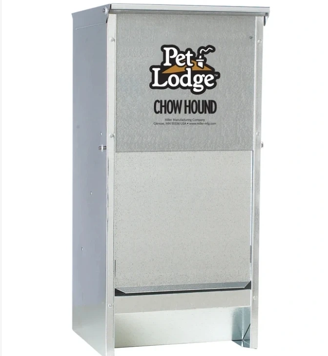 The Chow Hound Automatic Dog Feeder is manufactured from tough galvanized steel for durability and rust resistance. The magnetized door stays shut until your dog nudges it open, keeping unwanted pests out. A specially angled chute provides a steady food flow on demand. Food stays fresh, dry, and pest free. Can be mounted on a wall or frame (not included). Comes fully assembled.