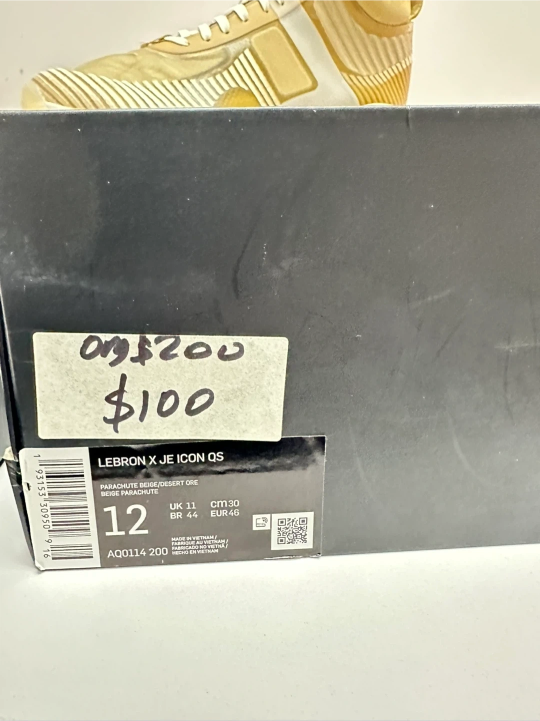 Selling a pair of Brand New Nike LeBron X JE Icon QS in Parachute Beige/Desert Ore colour. These are a size 12. Comes with the original box!