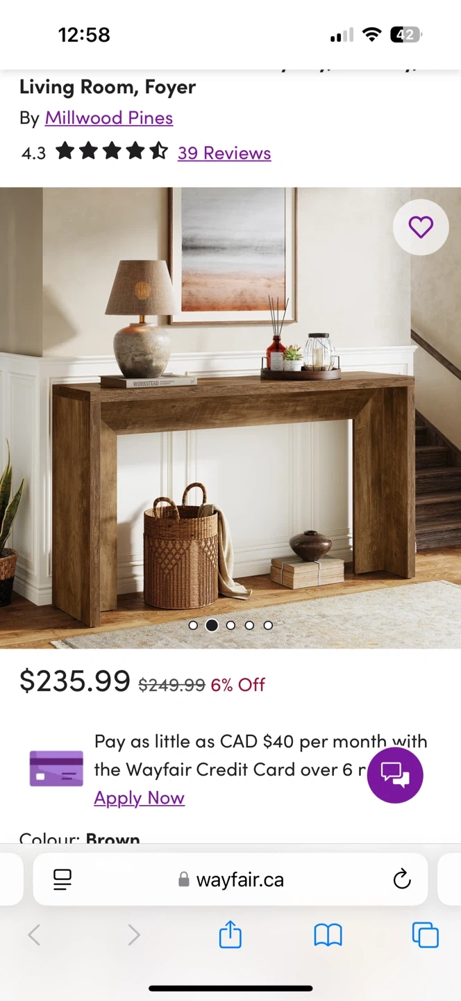 Selling a Millwood Pines console table in brown. The dimensions are 55.12" x 11.81" x 31.5". Great for a living room or foyer!. Available for pickup and delivery