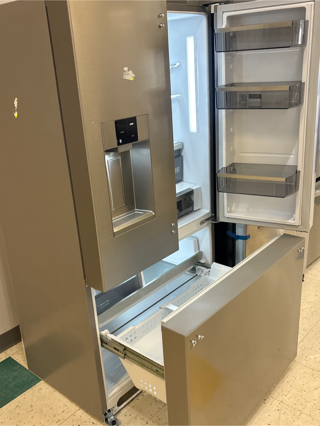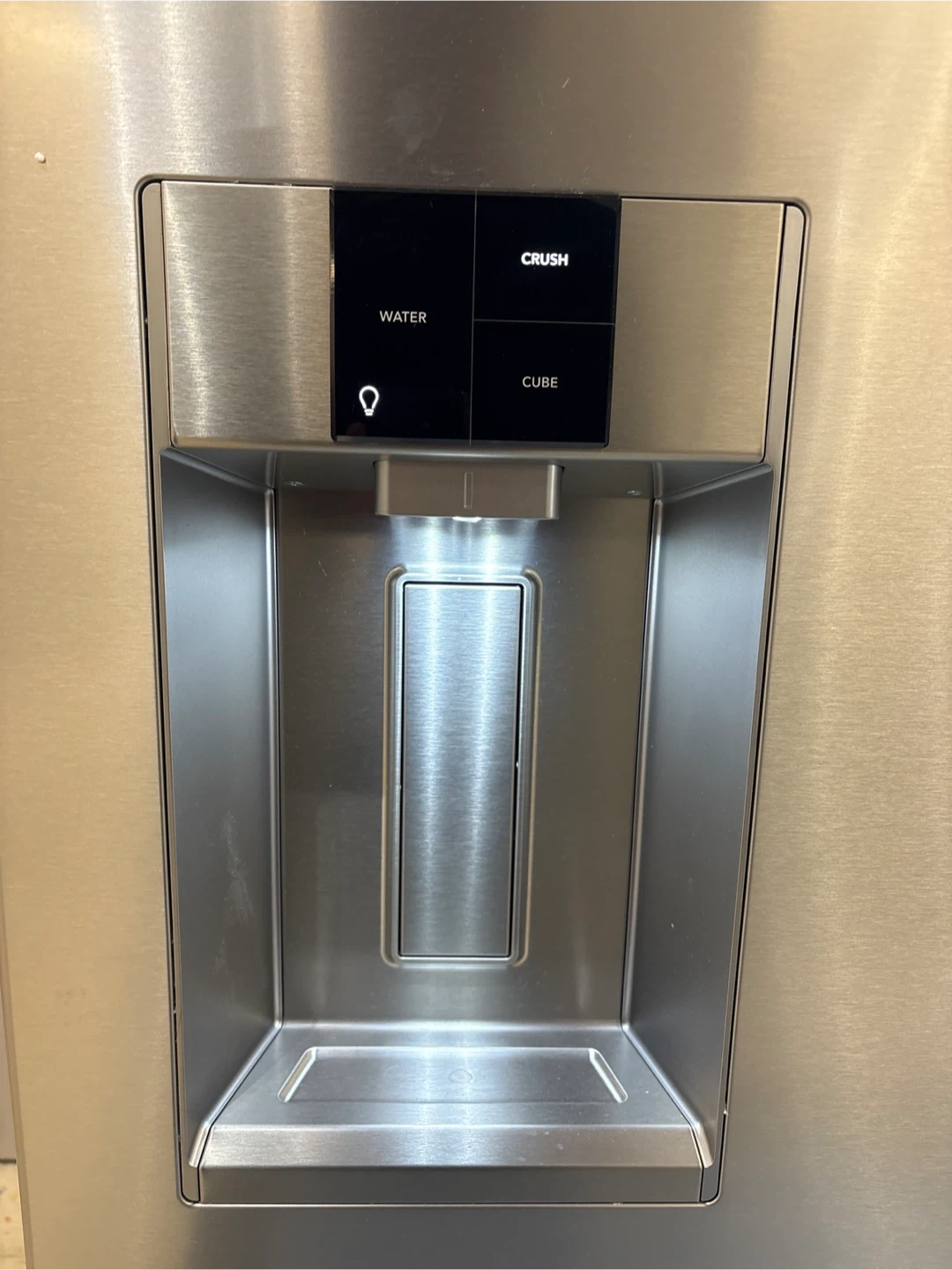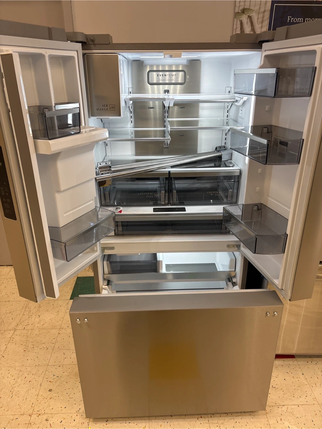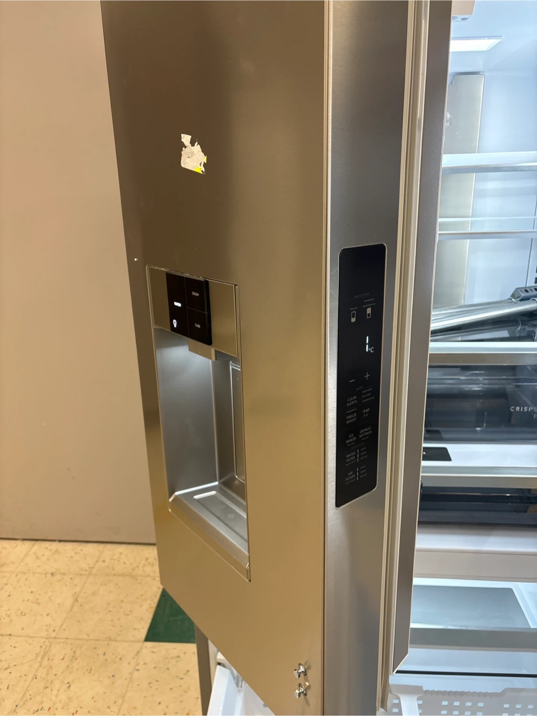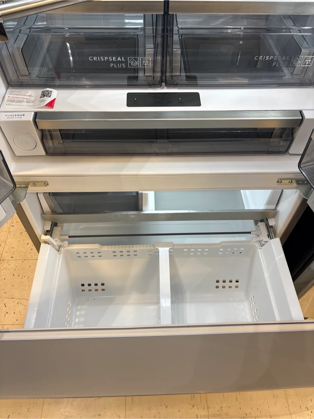 Selling a Frigidaire Professional French door refrigerator. It features CrispSeal Plus crispers and an EvenTemp cooling system. It also has an ice maker and water dispenser.