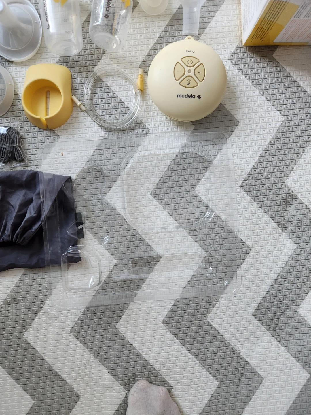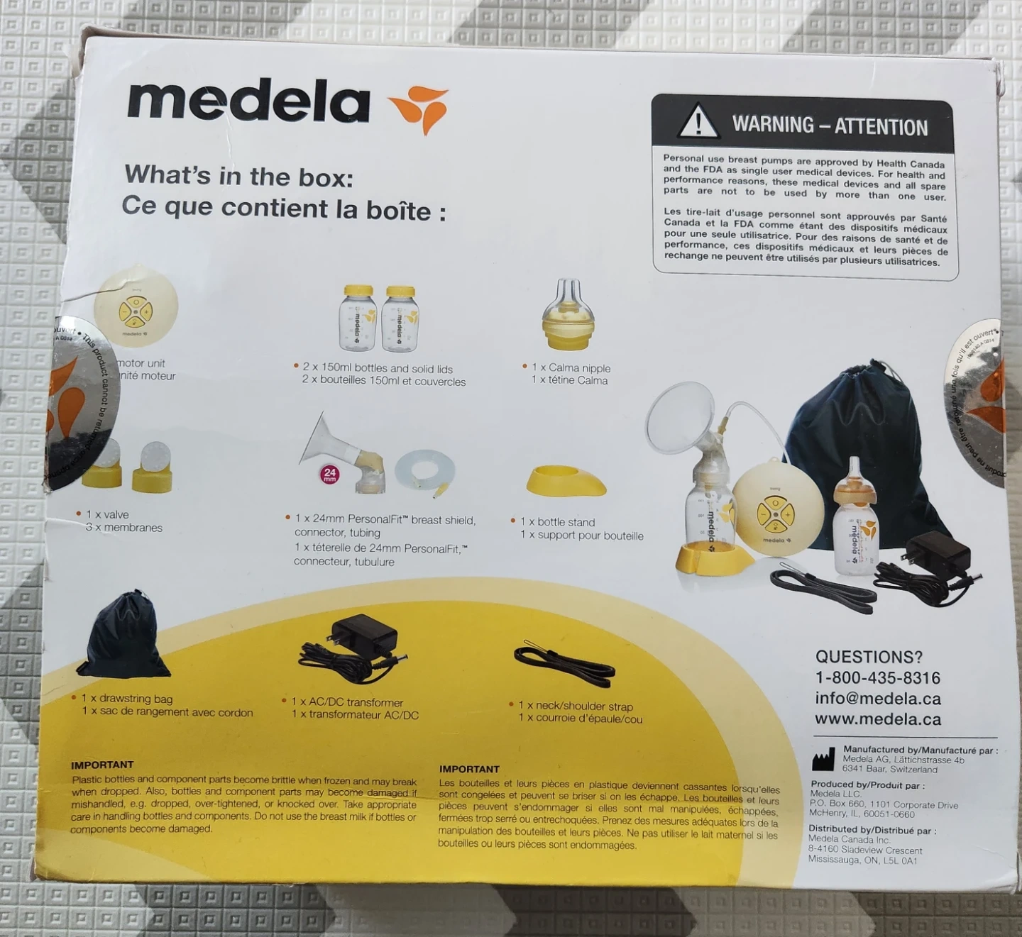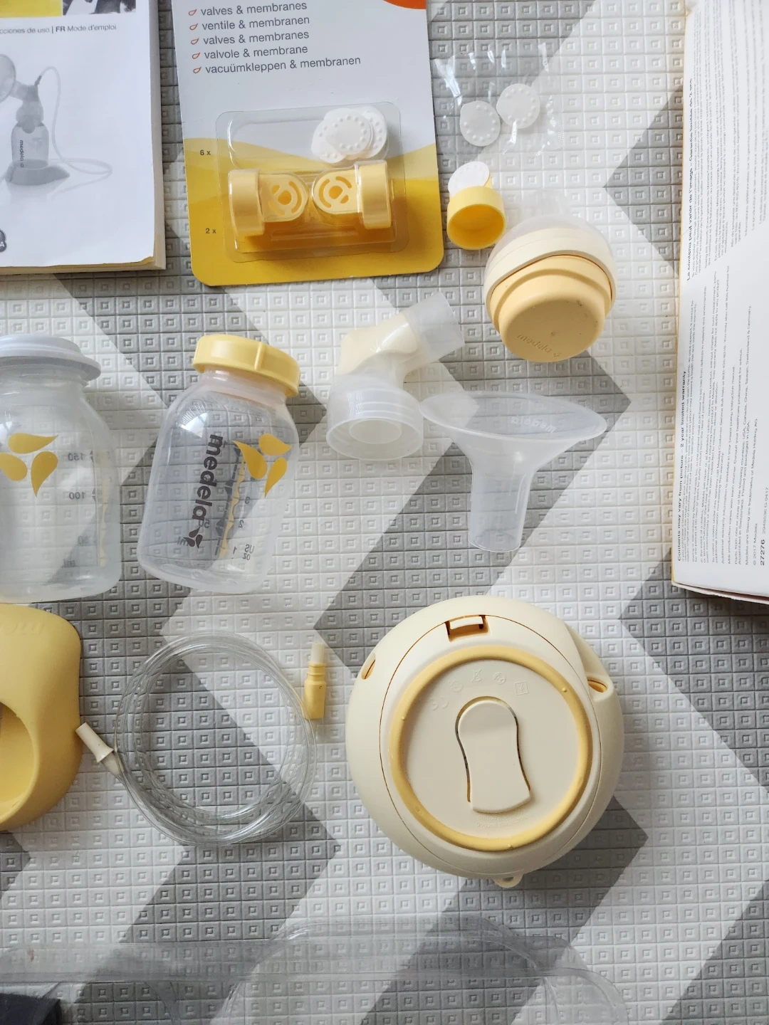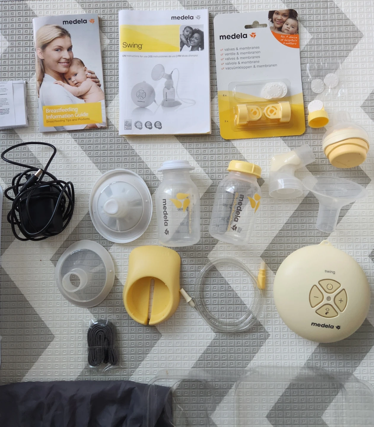 Selling a Medela Swing single electric breast pump. Like new!Comes with all the parts as per photos. Bottles not used for feeding baby. Tryed the pupm only once. Valves and membranes are new (unopened package) - just them alonr are currently sold on Amazon for $11! Also included is a breastfeeding information guide. Comes with the original box/packaging