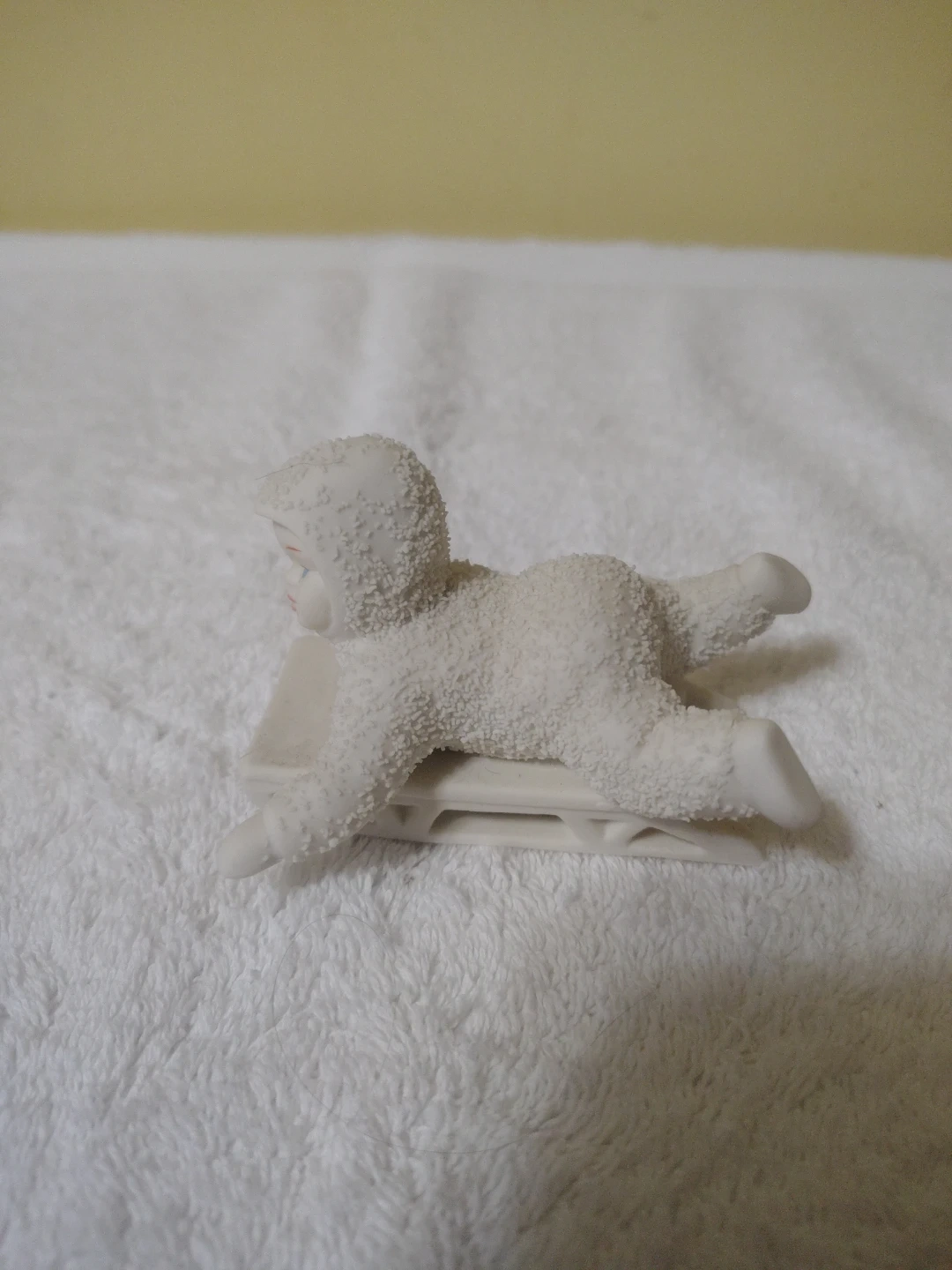 Here's a cute vintage Snowbabies figurine! It's a little baby crawling on a sled. A charming addition to any collection!