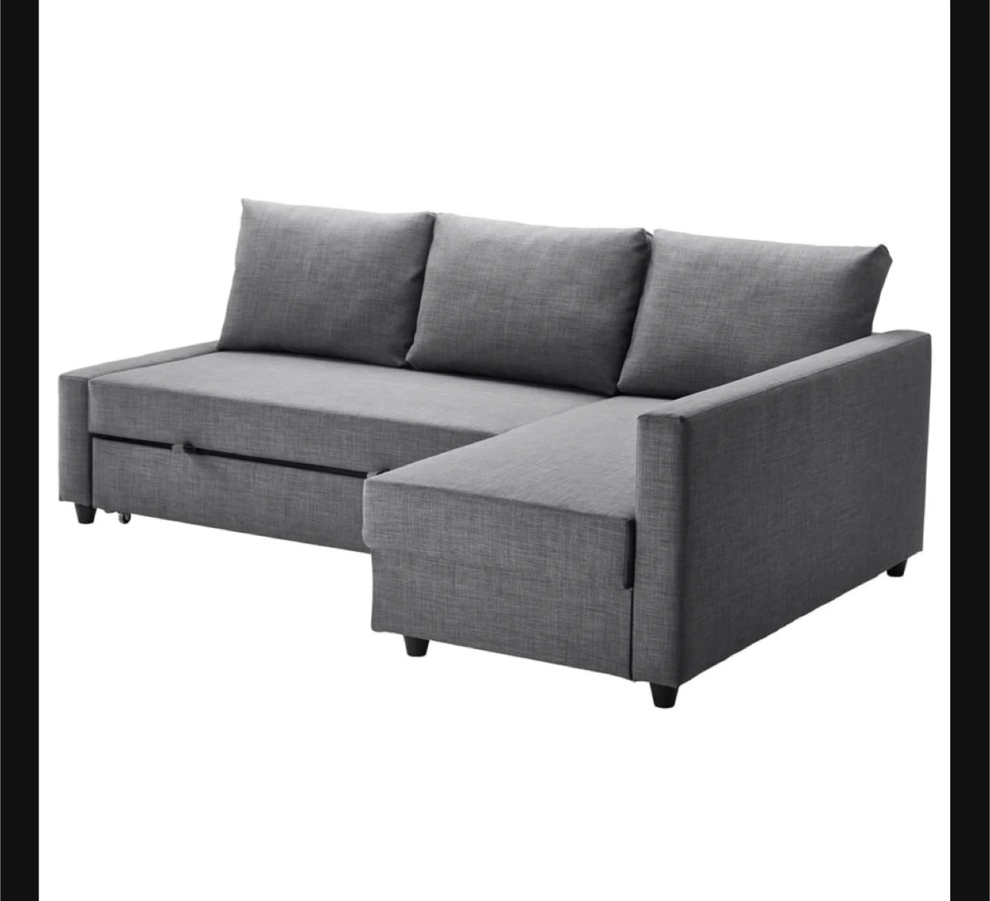 Selling a grey IKEA Friheten sleeper sectional sofa! It's in great shape and super functional. This sofa easily converts into a bed, perfect for guests or small spaces. Plus, it has built-in storage for blankets and pillows.