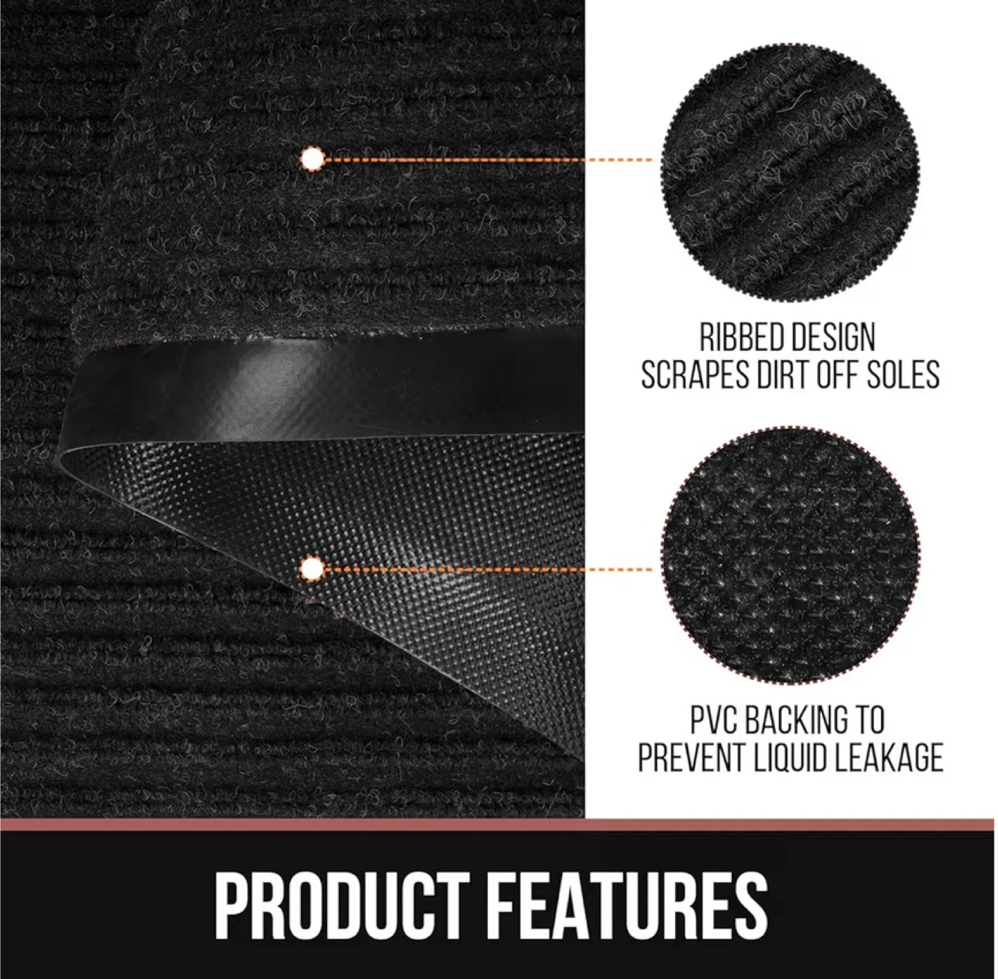 This black mat is perfect for either indoor or outdoor use! It measures 3ft by 16.4ft (0.9m x 5m). It's made of PVC polyester and is both non-slip and durable, making it a great choice for high-traffic areas