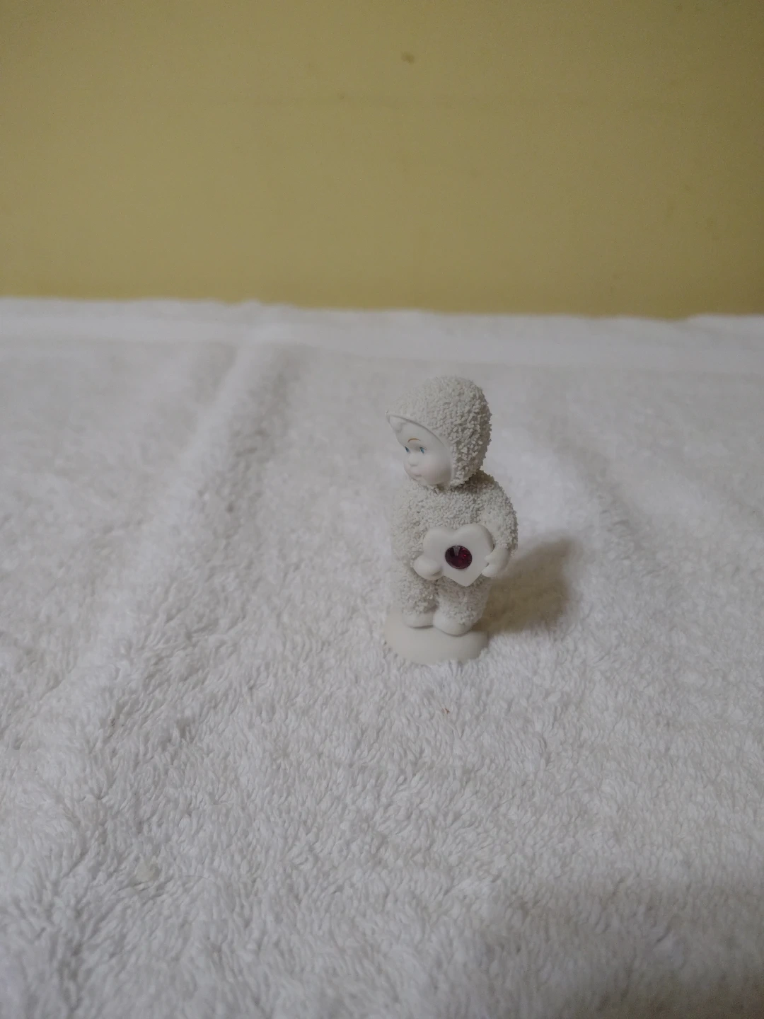 Here's a charming Enesco Snowbabies figurine! It features a snowbaby holding a heart. It's a sweet addition to any collection or a lovely decorative piece