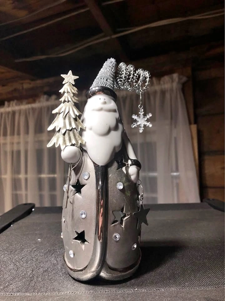 My Christmas items need new homes! This Santa is cute, glittery, and he holds a tealight where his bum should be!